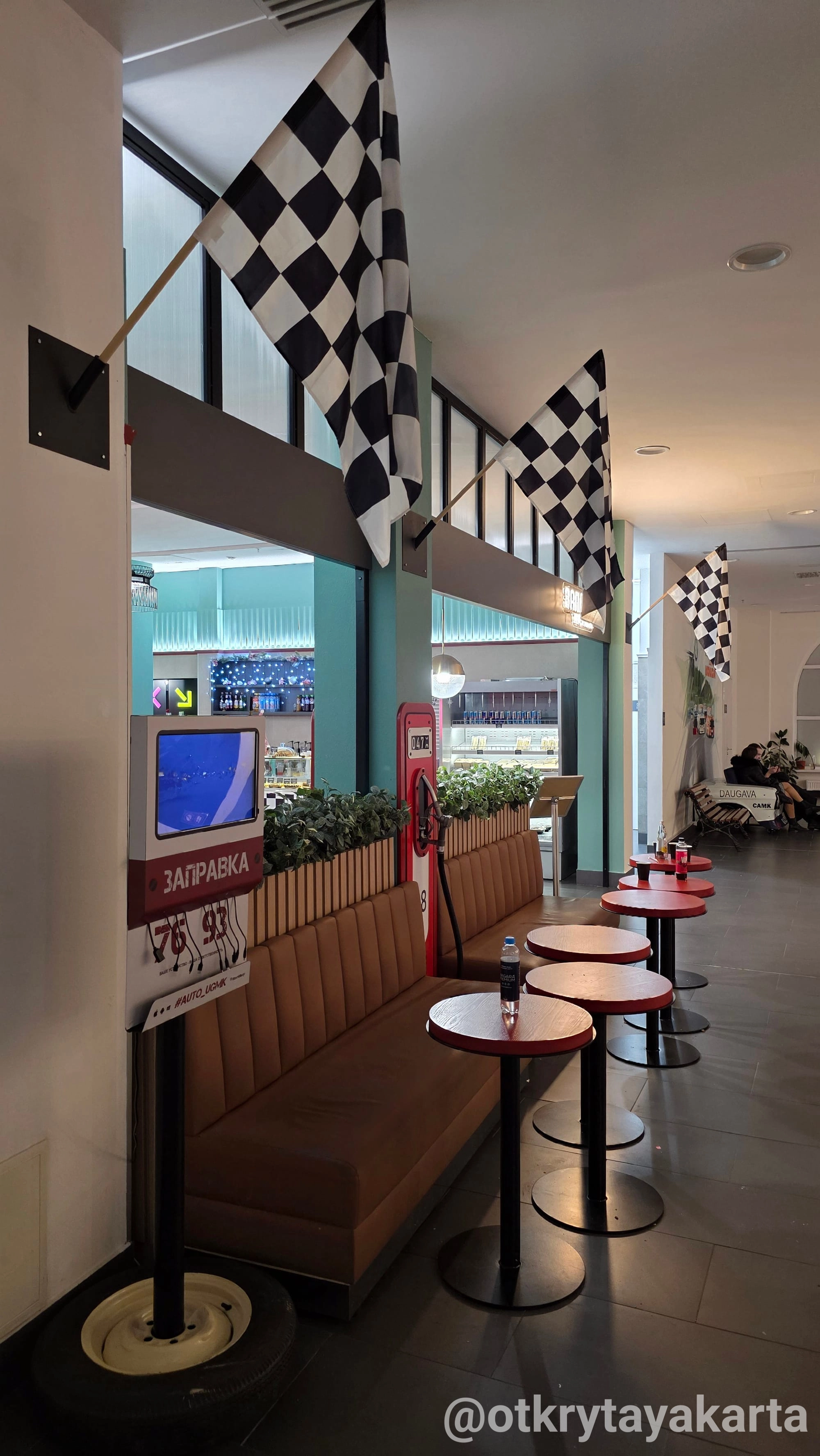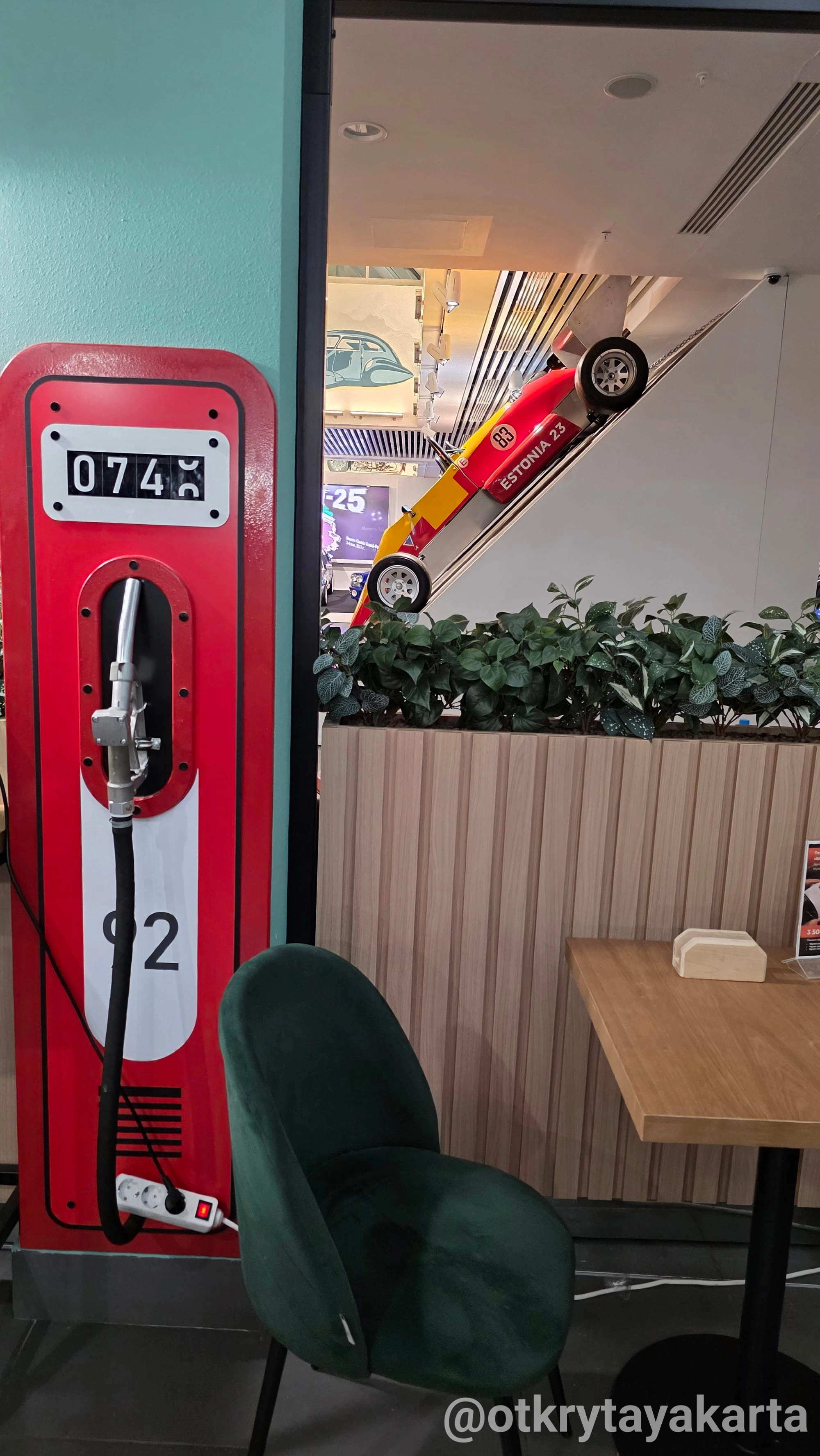 Путешествие по миру скорости занятие увлекательное, но утомительное. К счастью, музей позаботился о том, чтобы передышка стала не менее атмосферной, чем сама экспозиция. На четвертом этаже работает стилизованное кафе «Заправка» с настоящими бензоколонками — словно вы остановились перекусить на старой трассе.