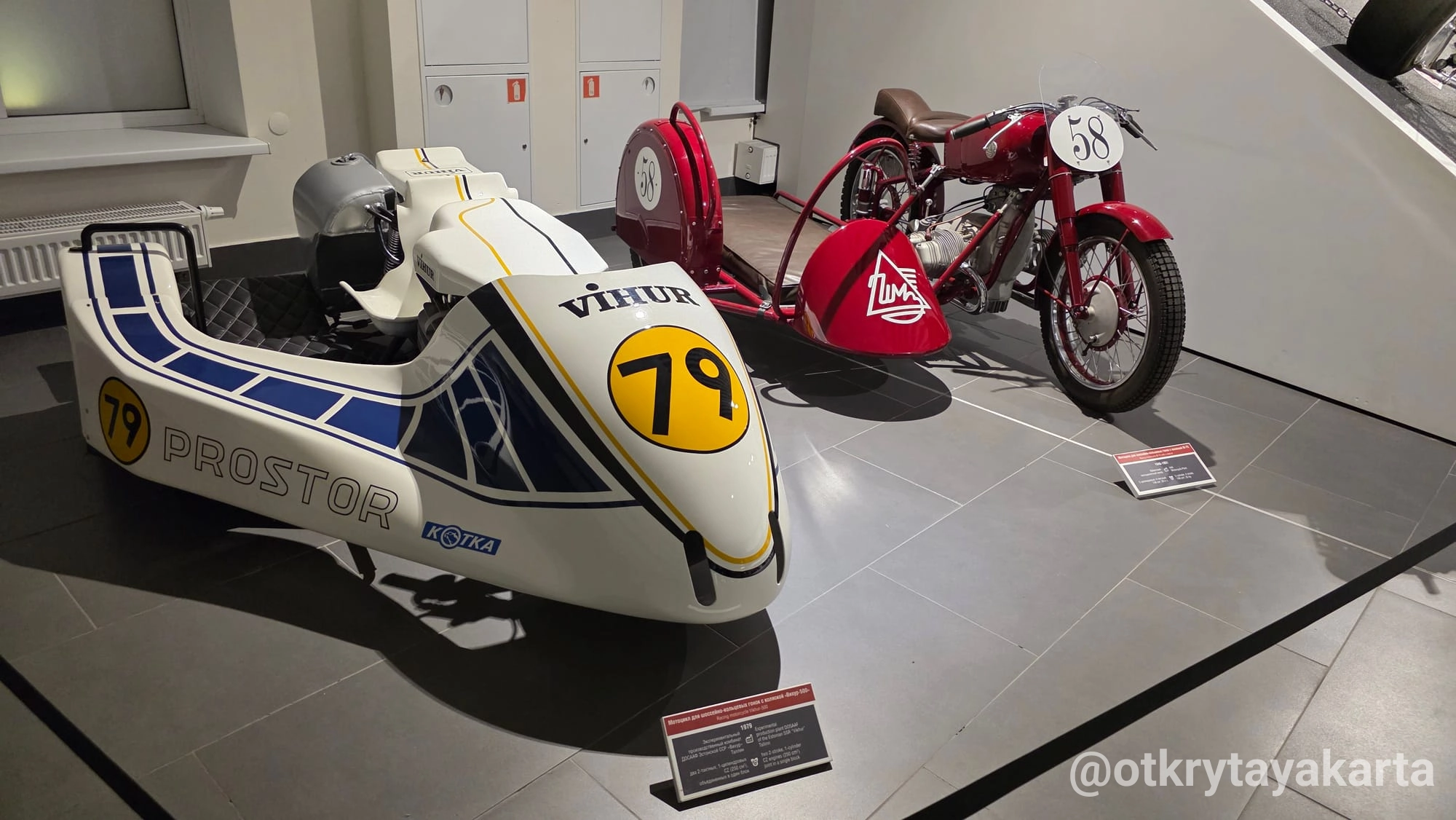 Отдельно отмечу среди мотоциклов, представленных на четвертом этаже, технику с маркой «Vihur» (в переводе с эстонского — «Вихрь»). В 1973 году в Таллине открылось экспериментальное производственное объединение ЦК ДОСААФ СССР, которое стало выпускать гоночные мотоциклы собственной конструкции и заниматься доводкой спортивной техники для сборной страны.