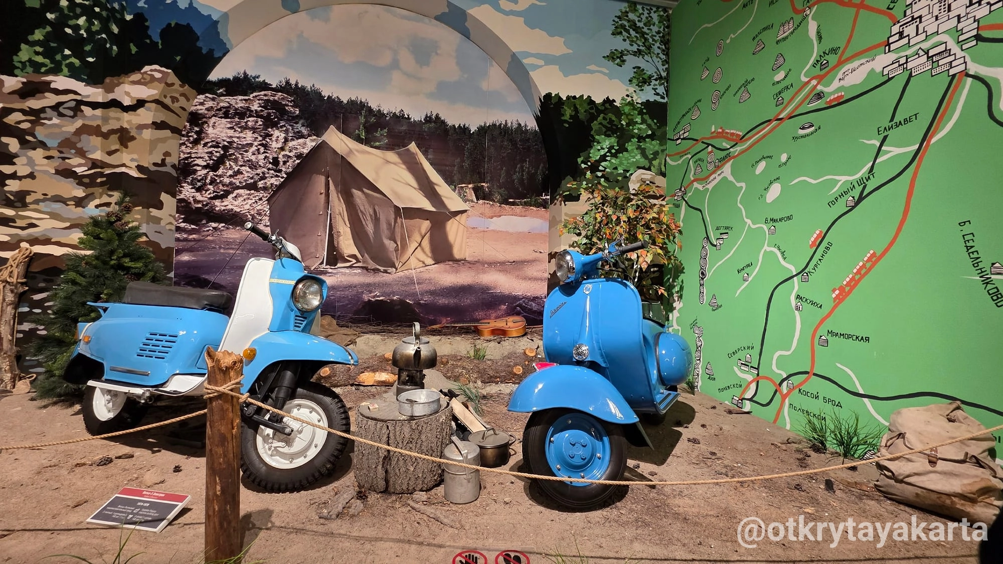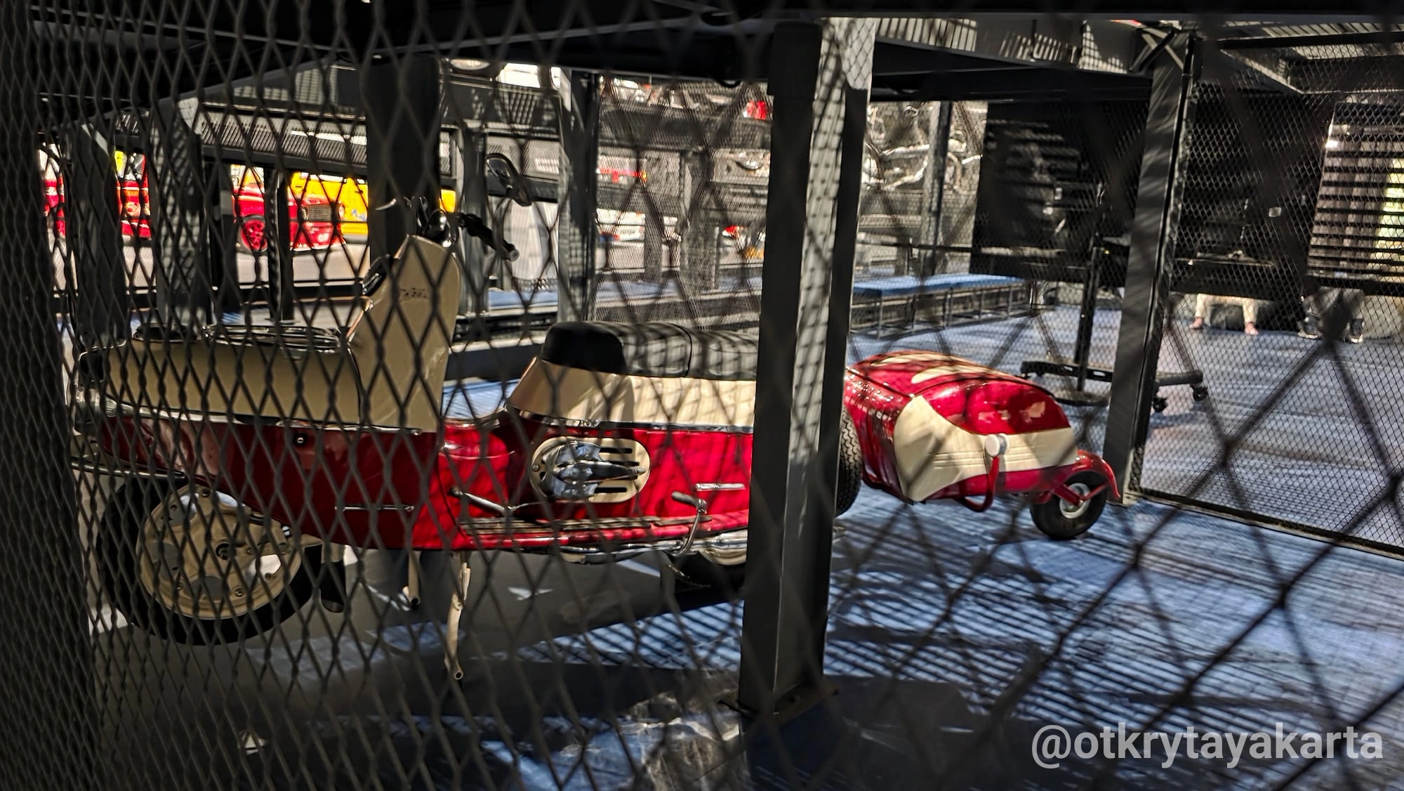 На четвертом этаже есть место, где экспонаты можно не только рассматривать, но и трогать. Точнее — садиться внутрь. Для поклонников советского кино здесь настоящий сюрприз: та самая мотоколяска СМЗ С-3А, на которой лихачил герой в комедии «Операция „Ы“ и другие приключения Шурика».
