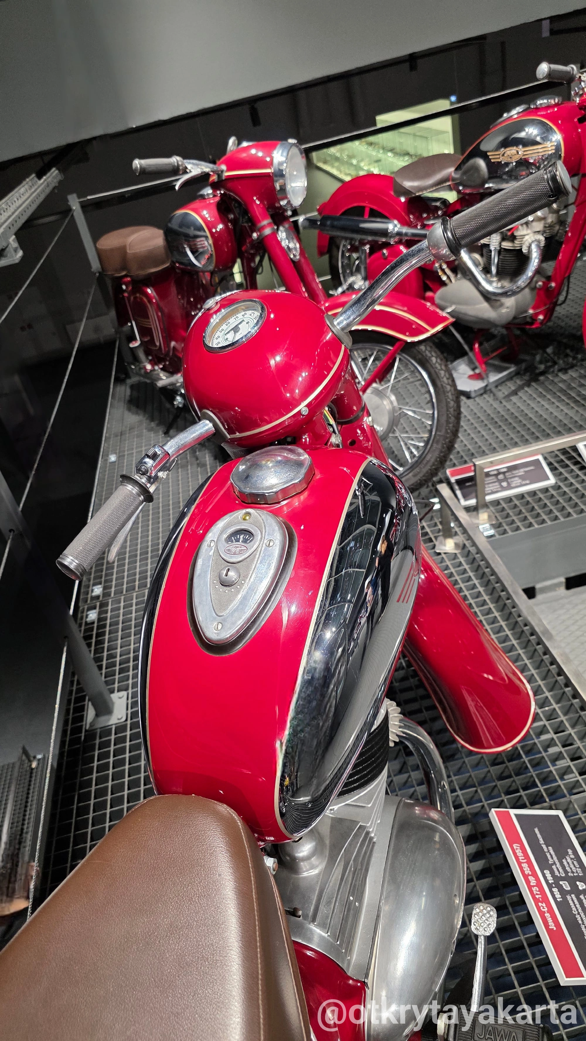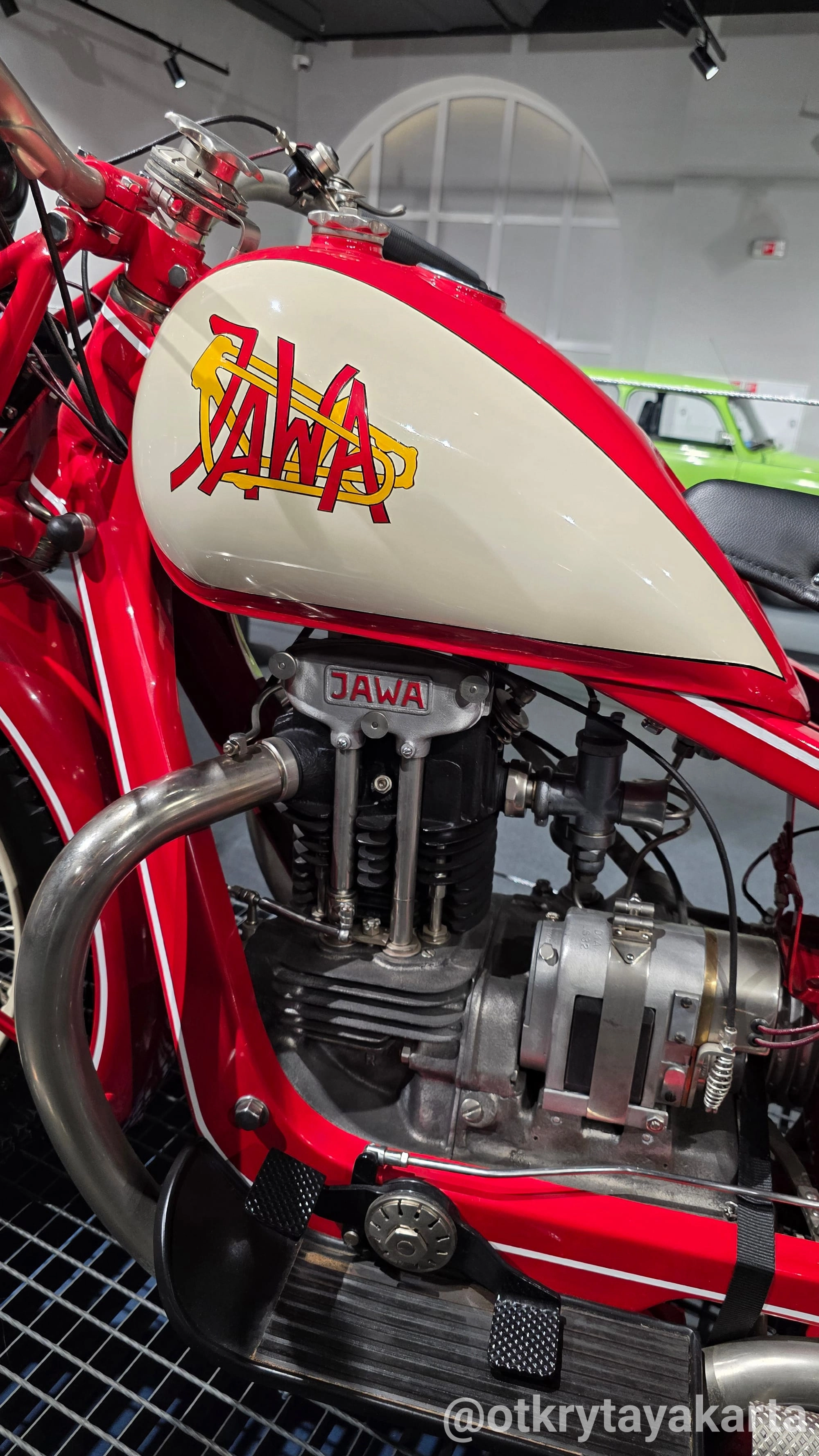 Коллекция охватывает практически всю историю бренда: от самой ранней модели Jawa-500 OHV 1929 года до Jawa-350 typ 638 1990 года, после которой массовый экспорт в СССР прекратился. Жемчужина собрания — редчайшая Jawa-500 typ 824 OHC Boxer, выпущенная всего в нескольких экземплярах. Здесь можно увидеть мотоцикл пожарной охраны, экспериментальные модели Bizon и Fleron.