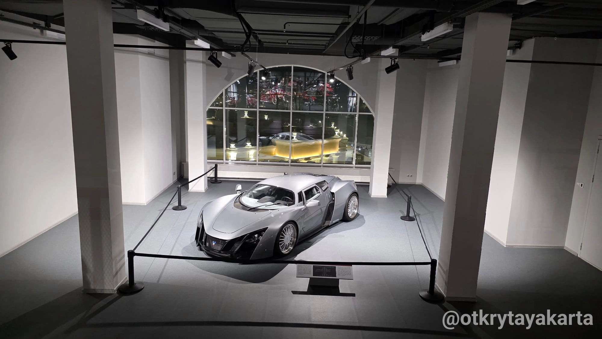 Среди советской и зарубежной классики на четвертом этаже неожиданно встречается автомобиль из совсем другой эпохи — яркий, агрессивный Marussia B2. Это один из самых редких экспонатов музея: таких машин выпустили всего около полутора десятков.