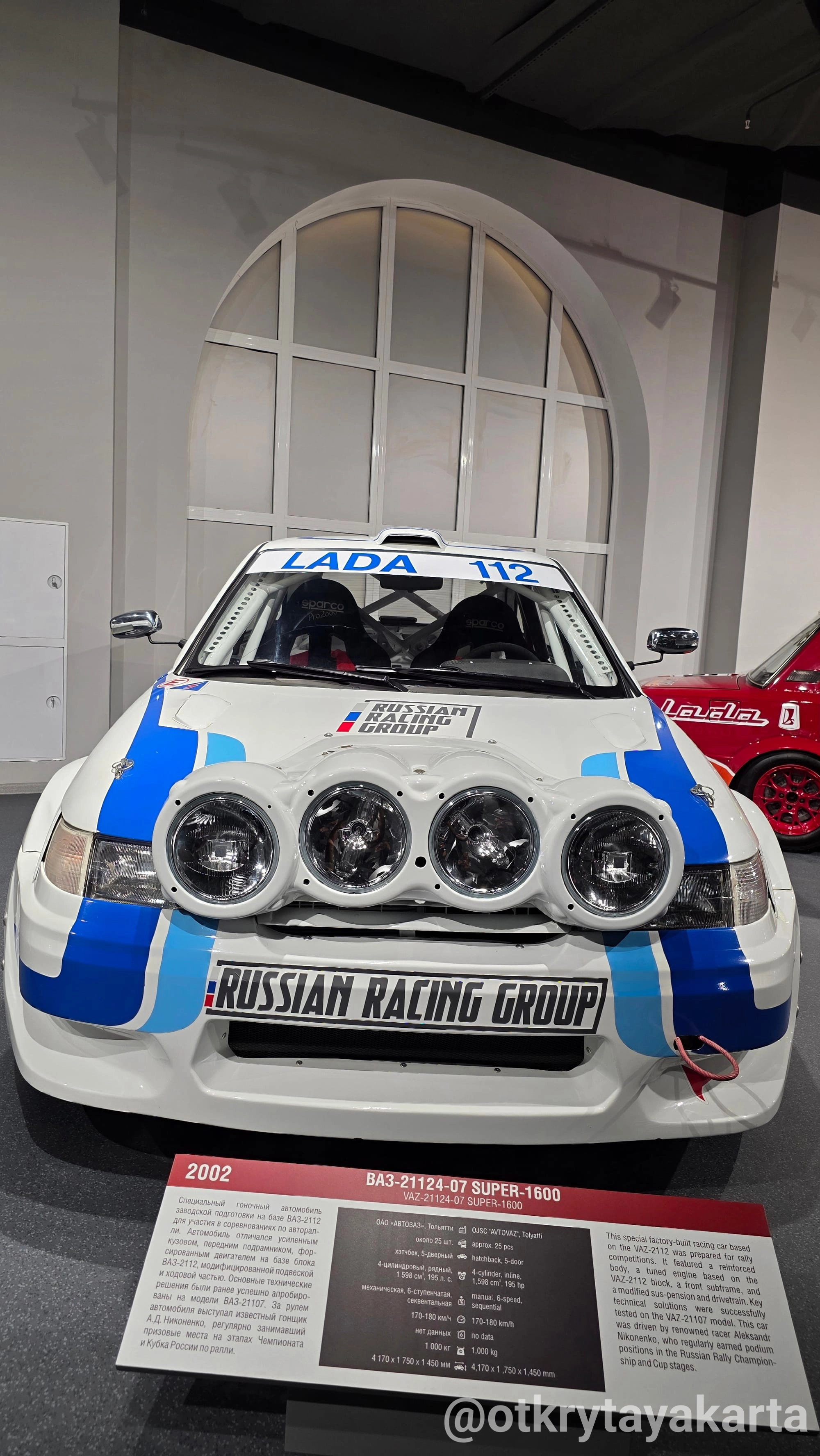 Спортивная модификация ВАЗ-21124-07 Super-1600 с «боевым» обвесом напоминает о попытках завода «АвтоВАЗ» покорить молодежные раллийные чемпионаты.