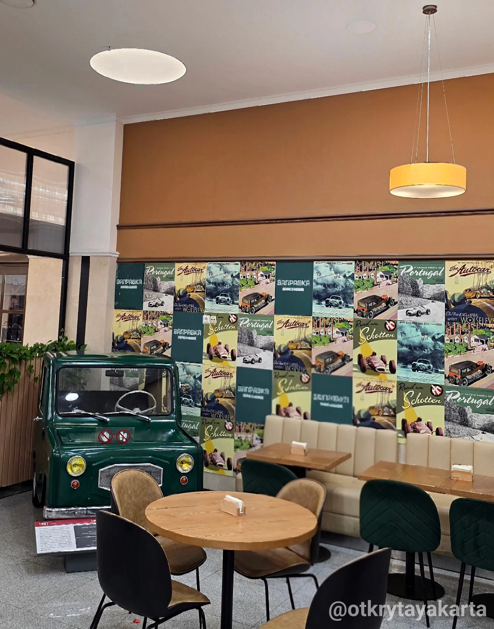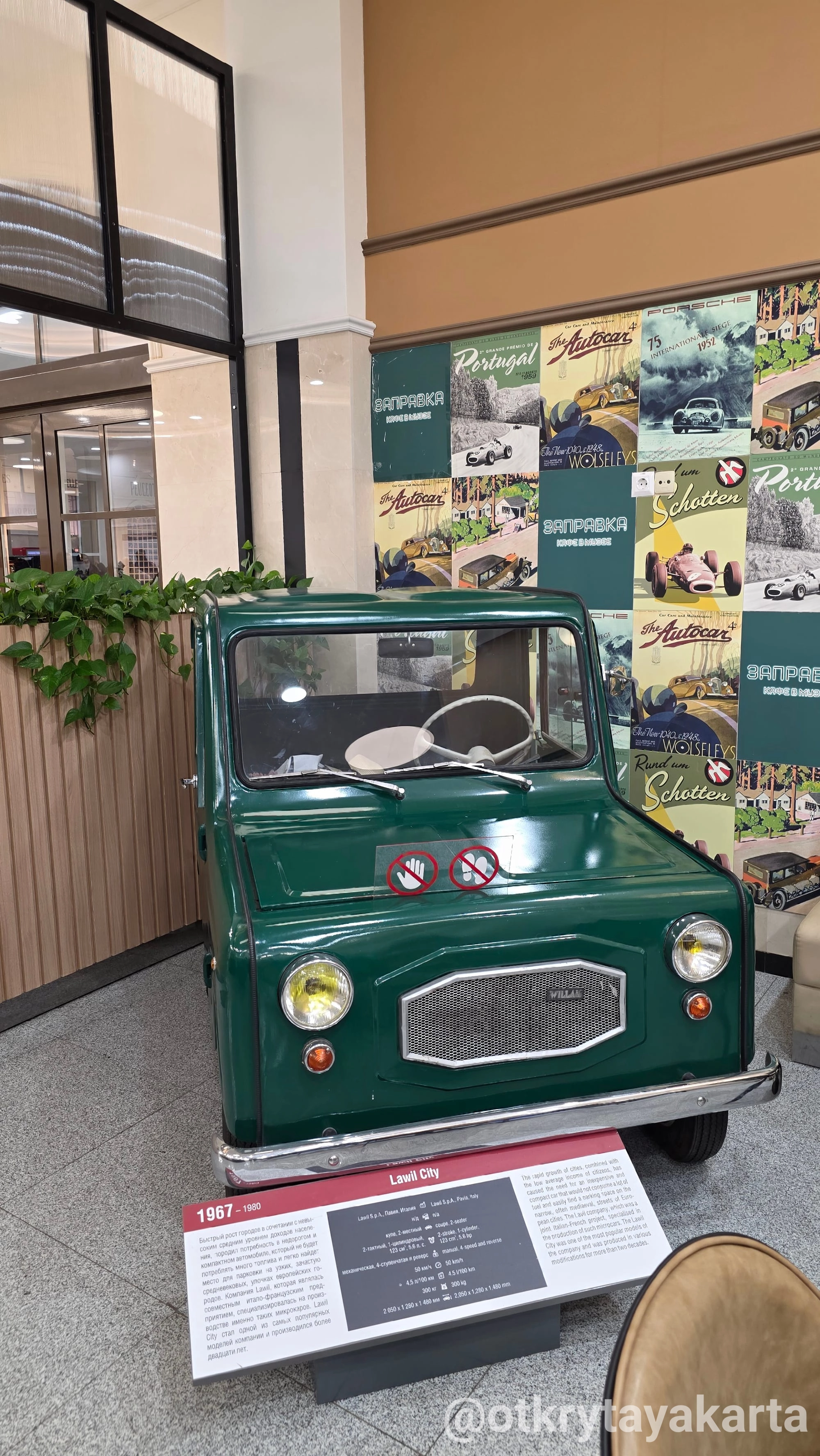 А на первом этаже в кафе гостей ждет настоящий ретро-автомобиль: итальянская микролитражка Lawil Citi. История здесь повсюду — даже за чашкой кофе.