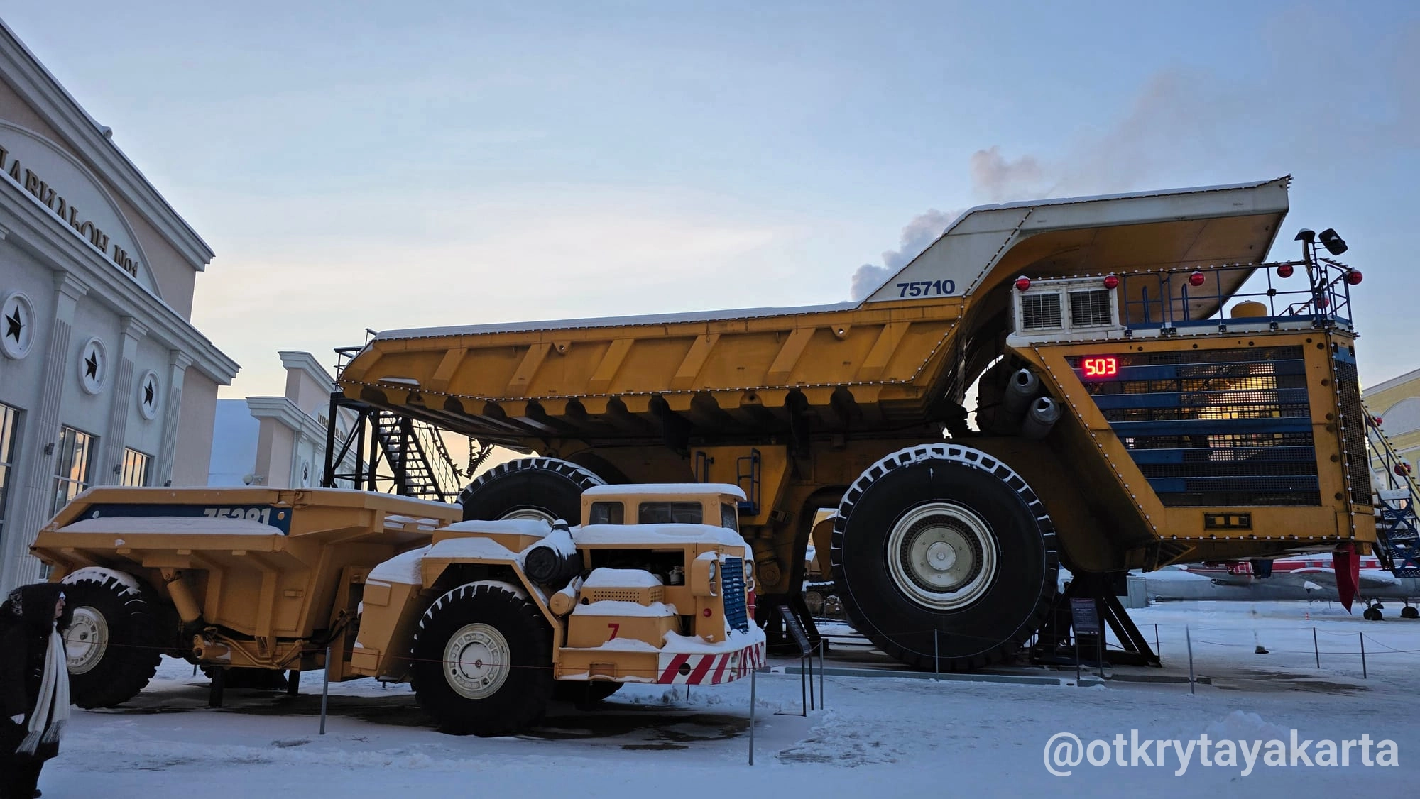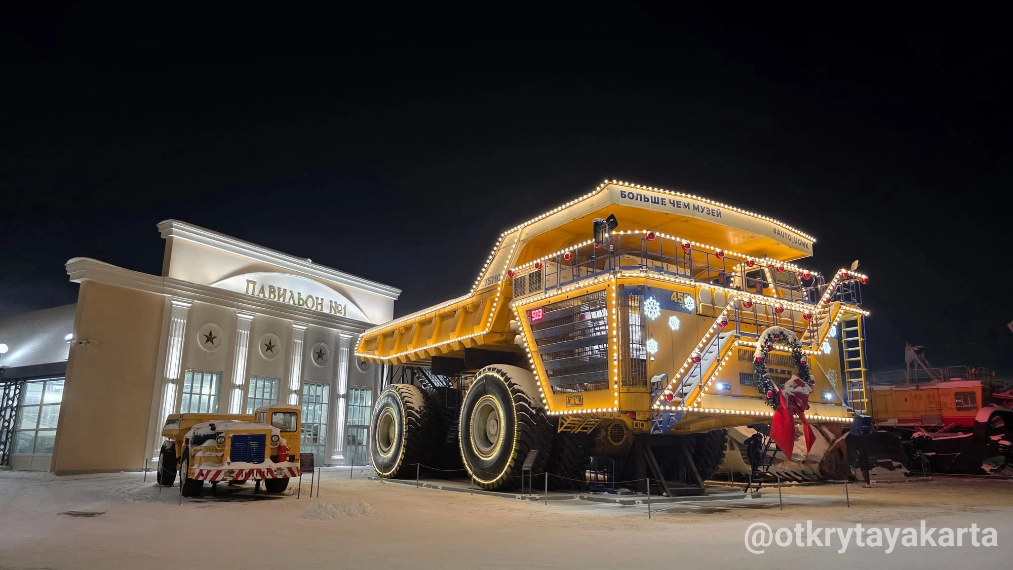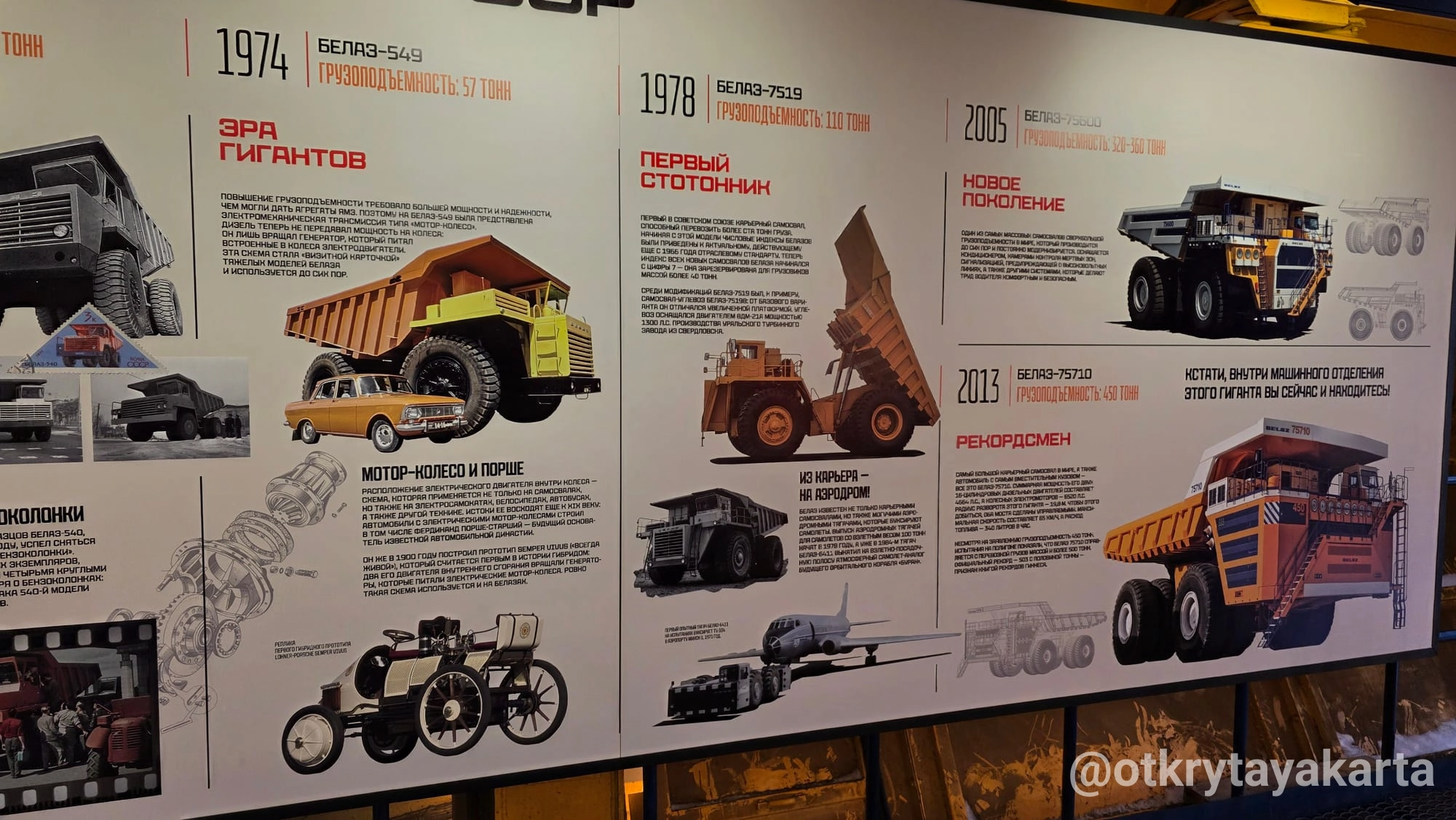 - БелАЗ-75710 — машина, внутри которой размещена выставка.