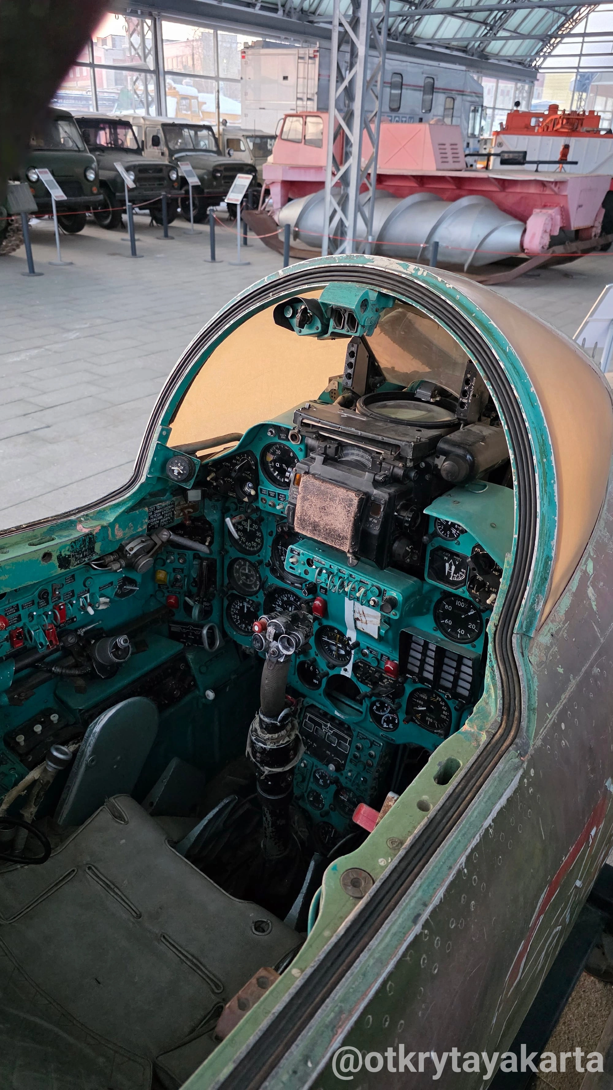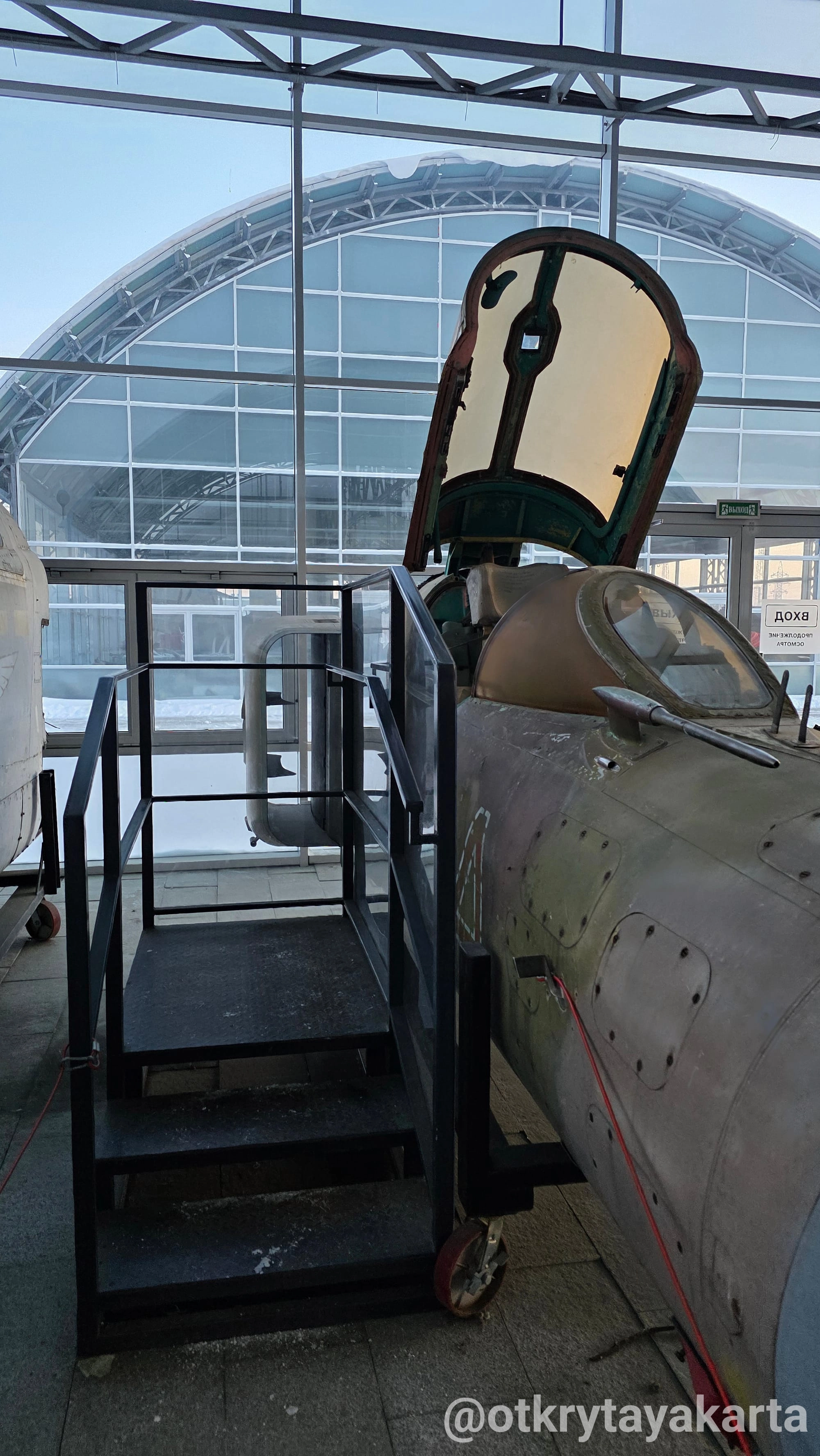 Обнадёживающая лестница вверх ведёт не в кабину водителя (а хотелось!), во внутренний зал со стендами