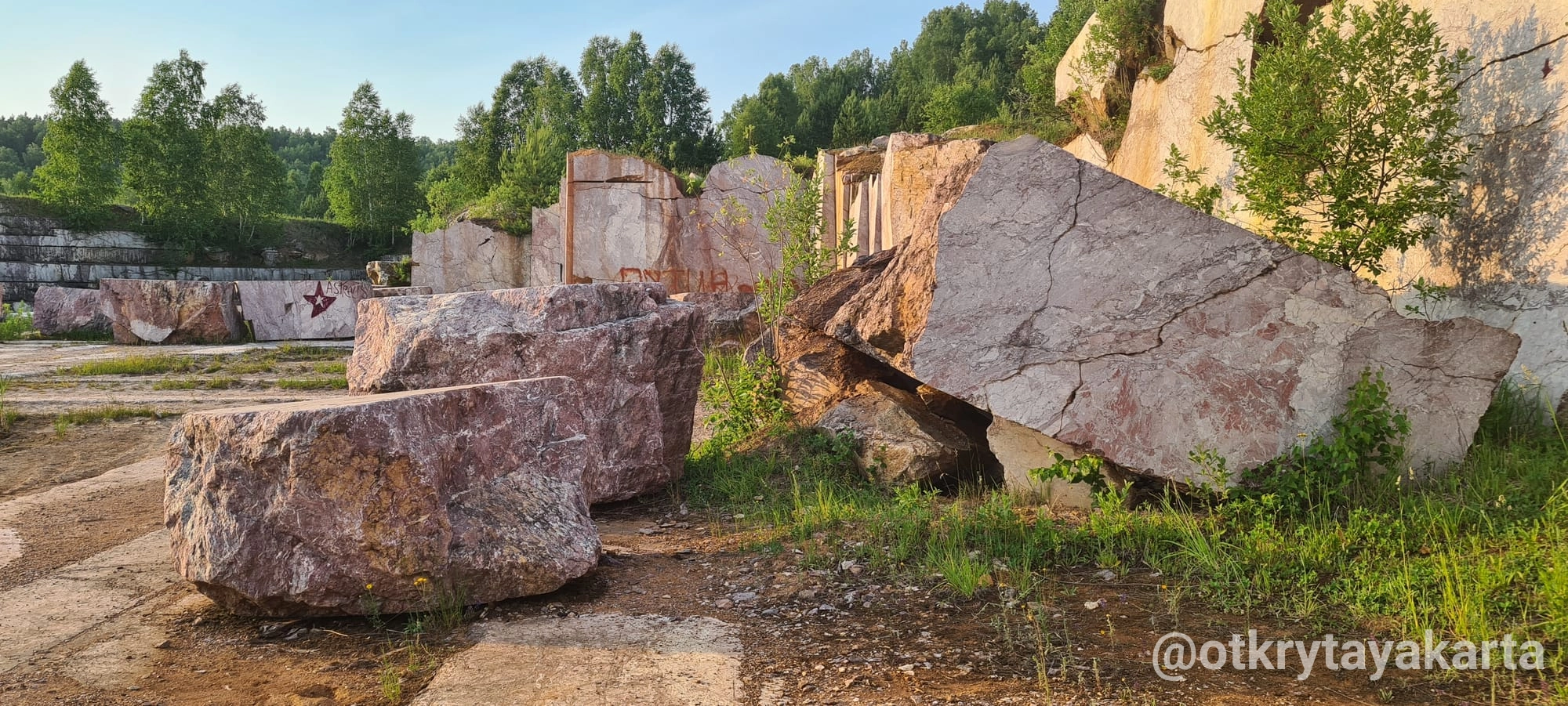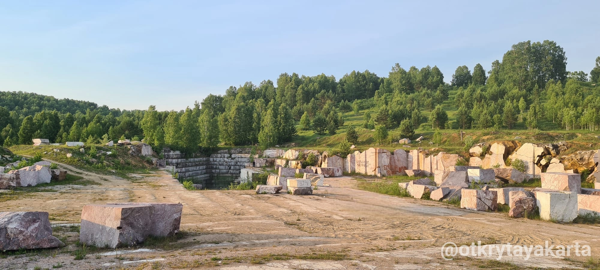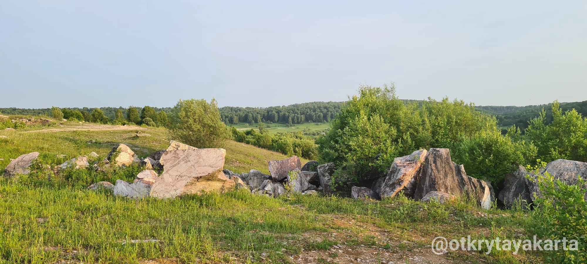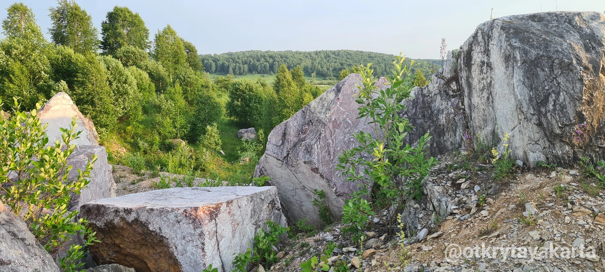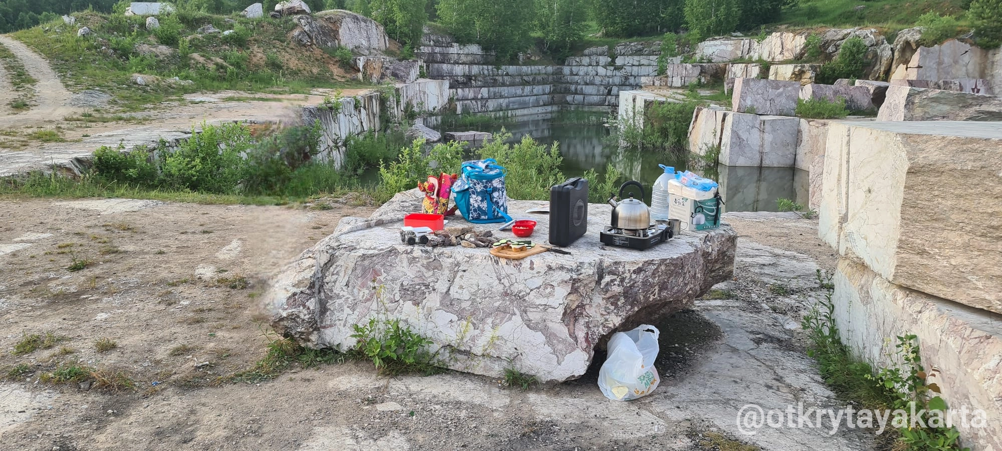С холма, где расположен карьер, видно далеко вокруг: и деревню, и тайгу. Некоторые камни могут служить отличным столом для пикника😊