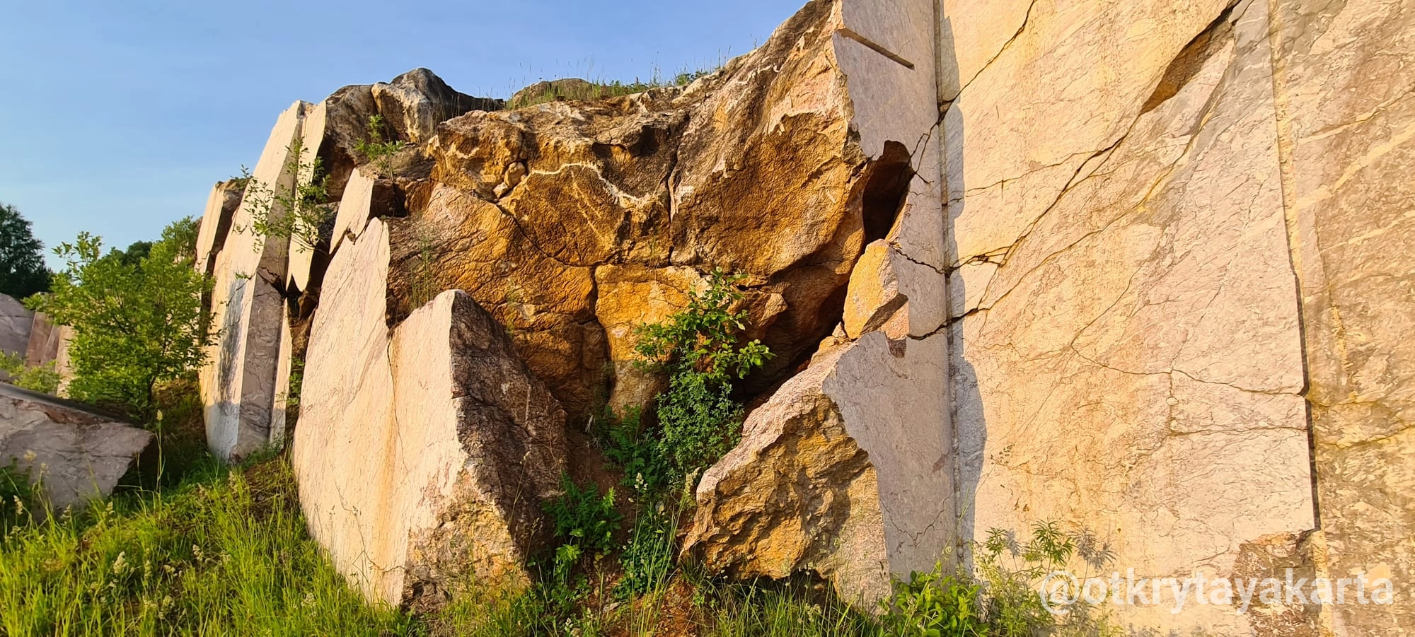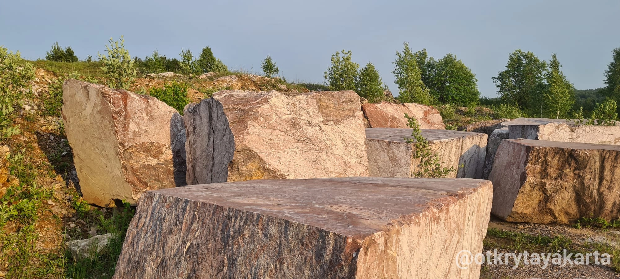 Гигантские ступени карьера, переливаясь теплыми оттенками от нежно-розового до глубокого коричневого, уходят вниз к зеркальной глади воды. В этой природной чаше, как в гигантском зеркале, отражается бегущие по небу облака, создавая ощущение бесконечности. И каждый унесенный с собой на память кусочек породы становится не просто сувениром, а частичкой этого удивительного места.