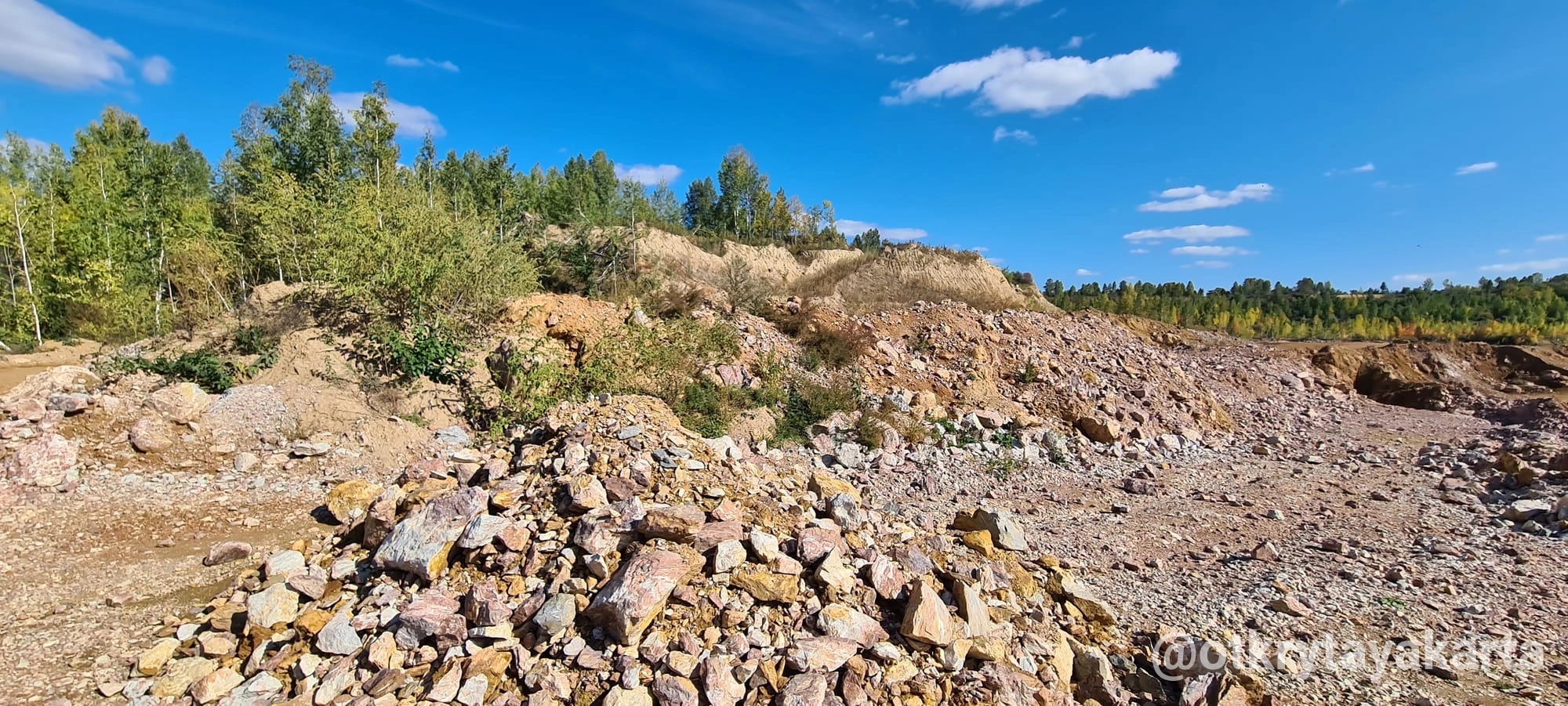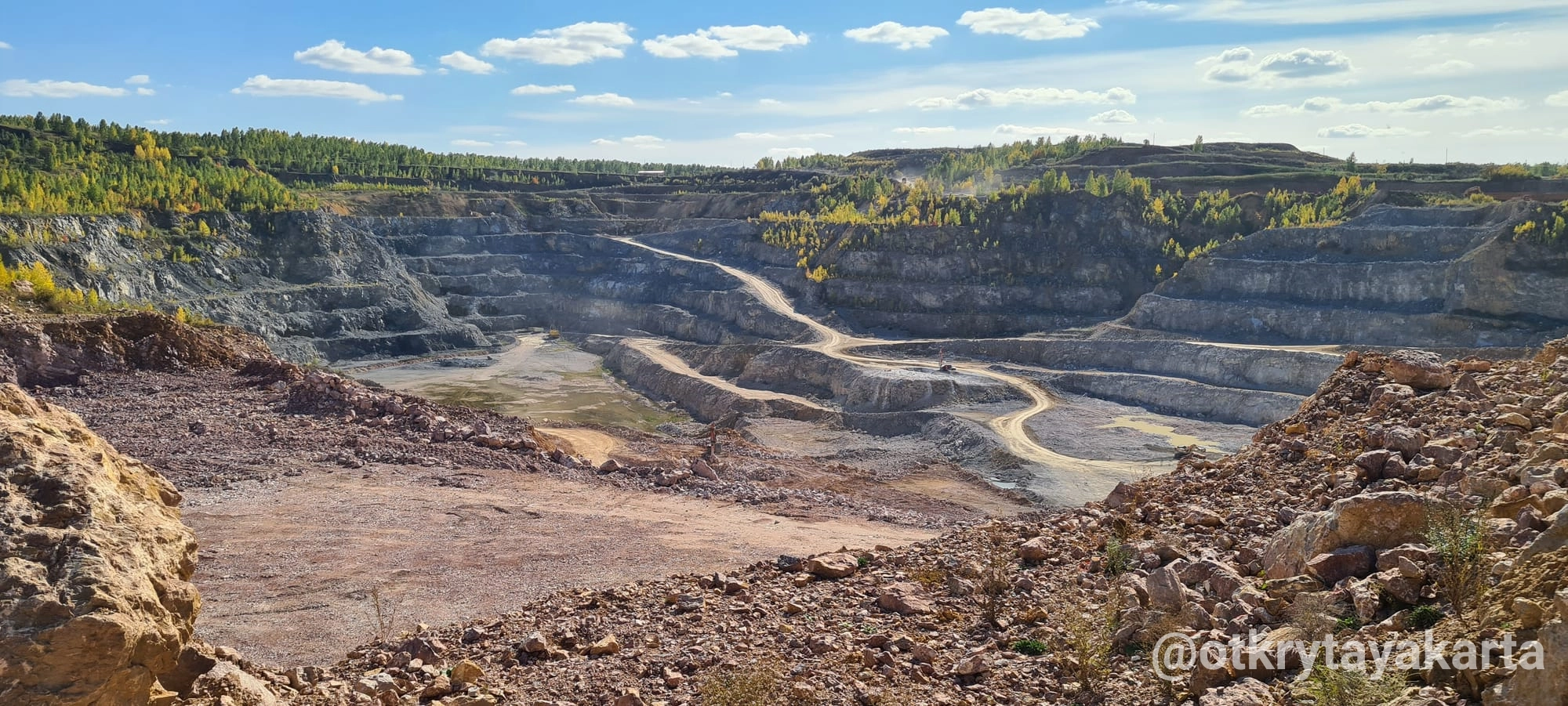 Пешеходный путь к карьеру очень интересный и красивый. Карьеры (и заброшенный, и действующий) видны издалека.