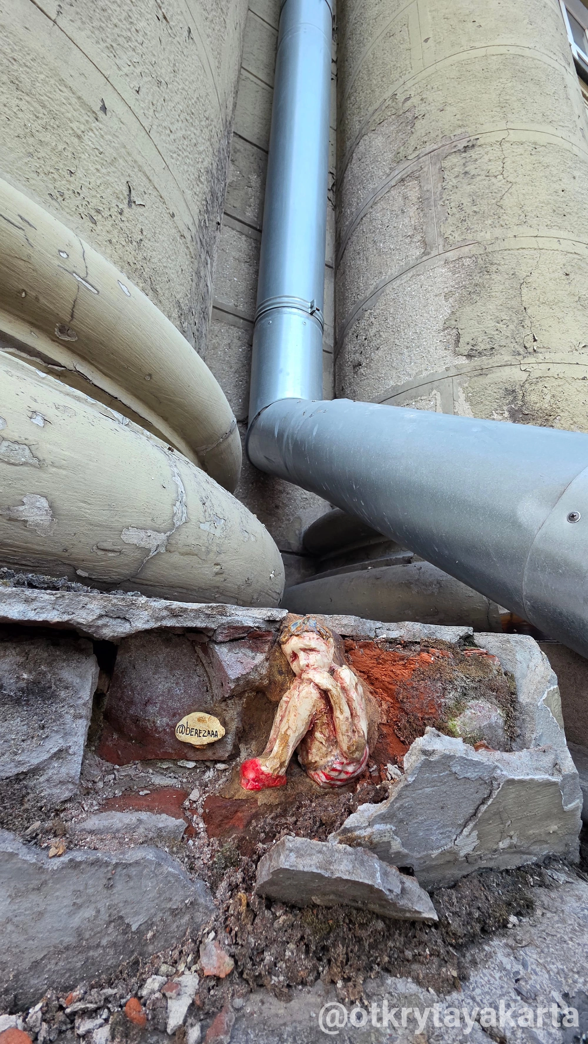 Я шла по улице и вдруг увидела его. Маленького человечка, который притаился в стене старого дома. Рядом был ник — @berezaaa. Остановилась. Кто это? Зачем он здесь? Есть ли ещё такие?