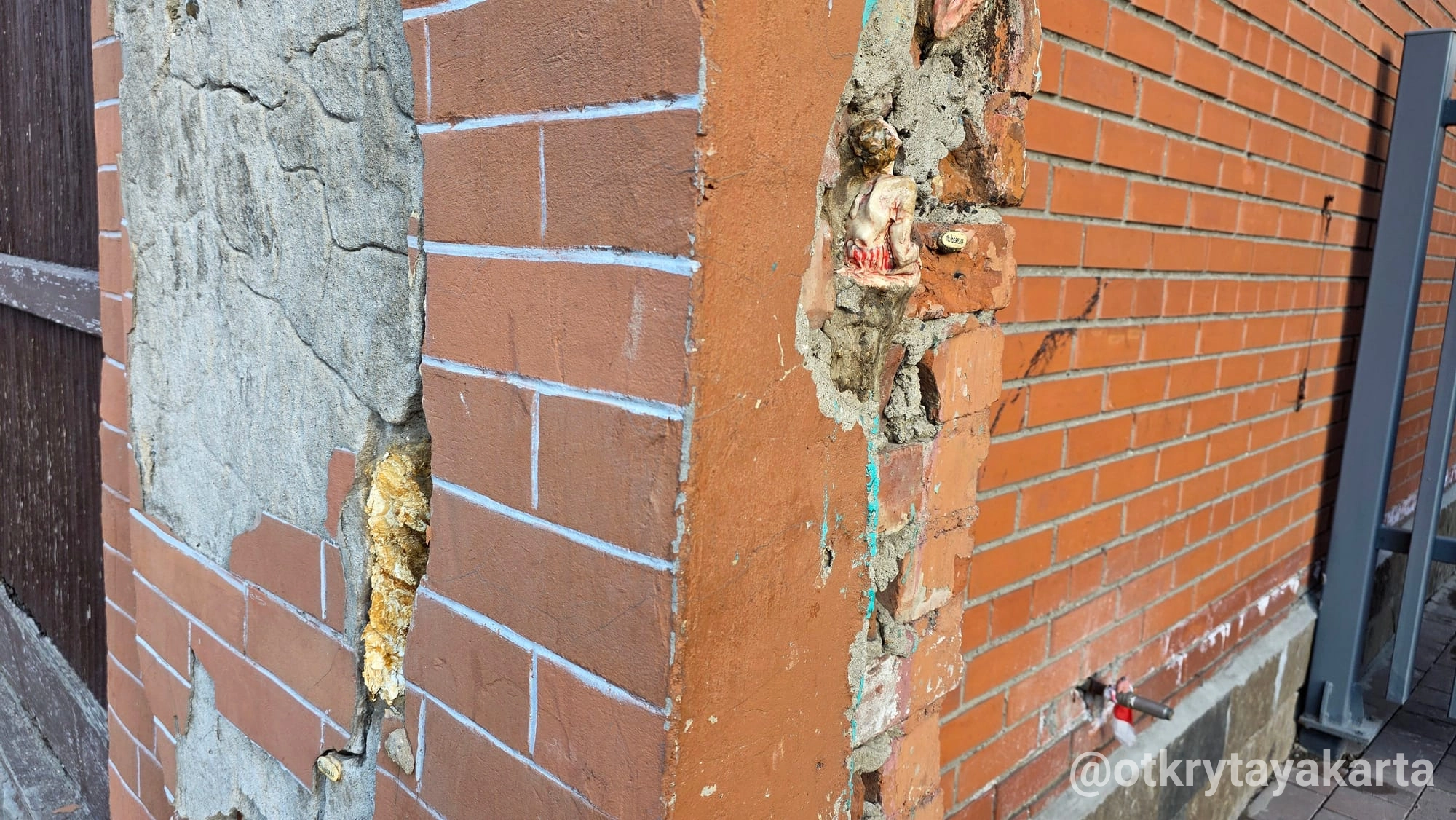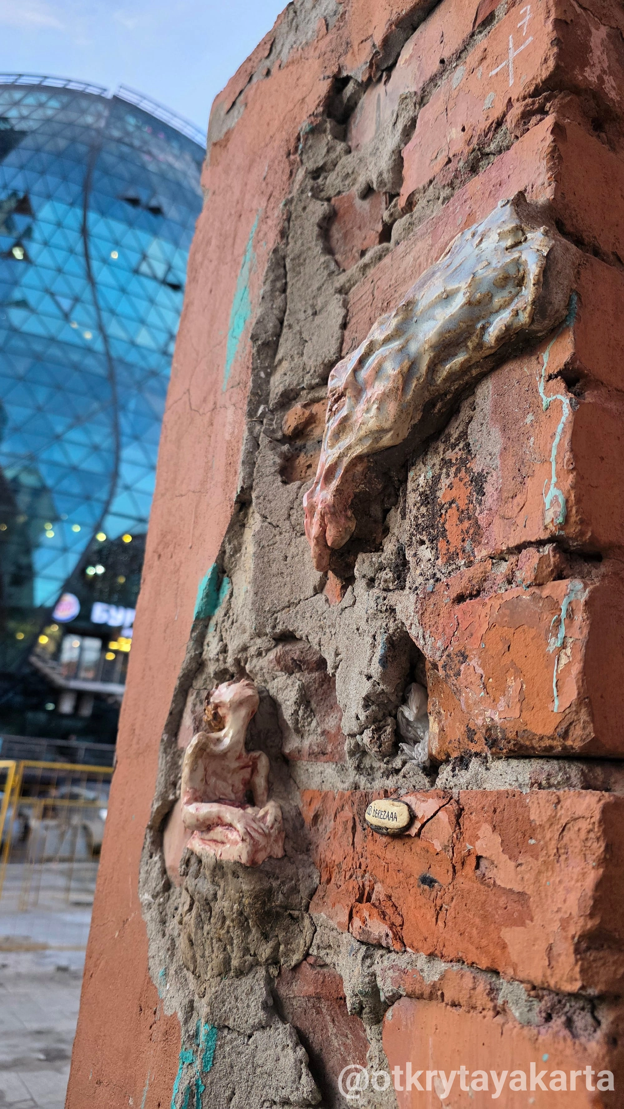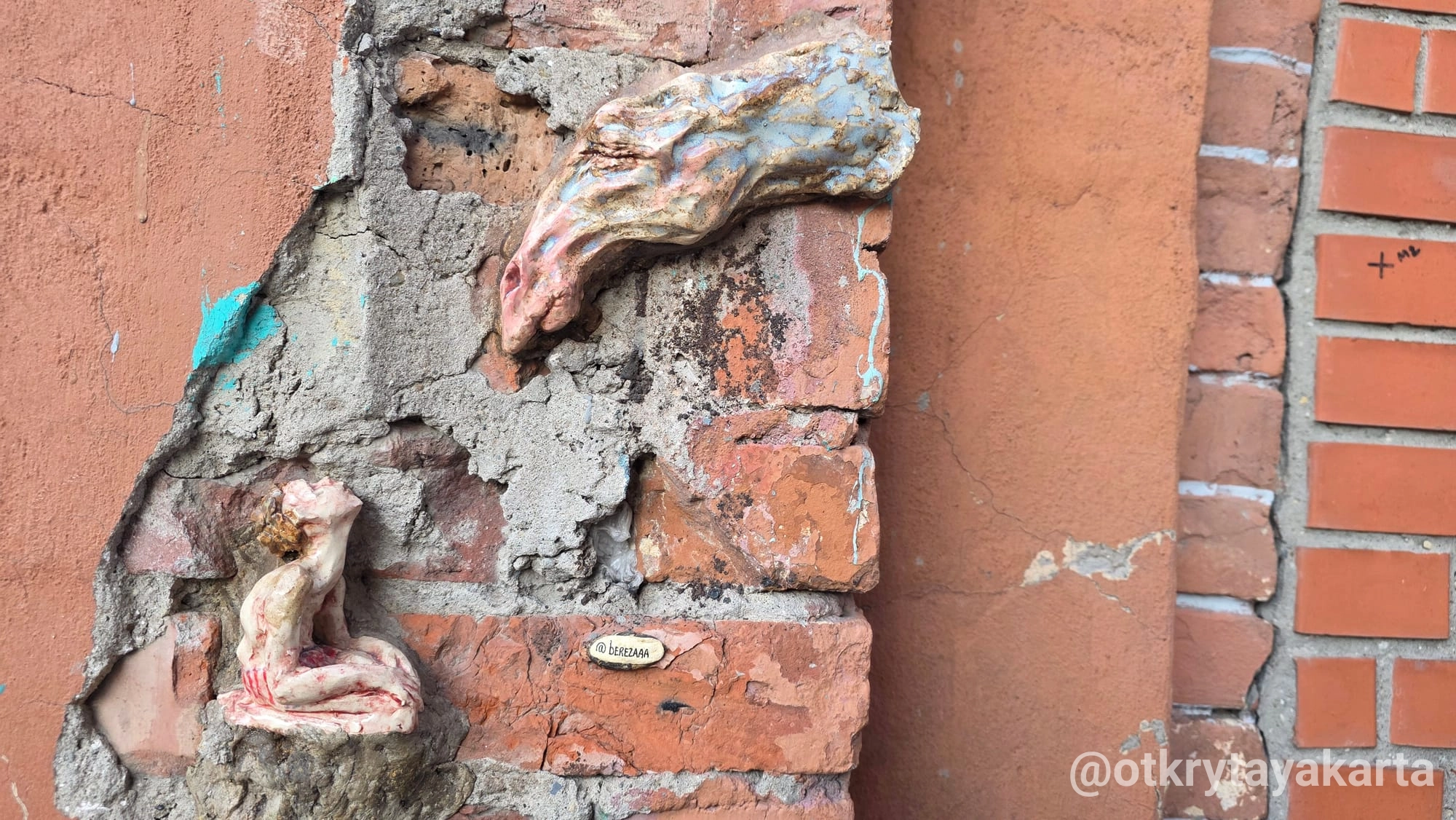 «Эти трещины — как раны города. Скульптуры будто залечивают их, создают новую жизнь и дыхание. Из разрушенного рождается что-то живое».
