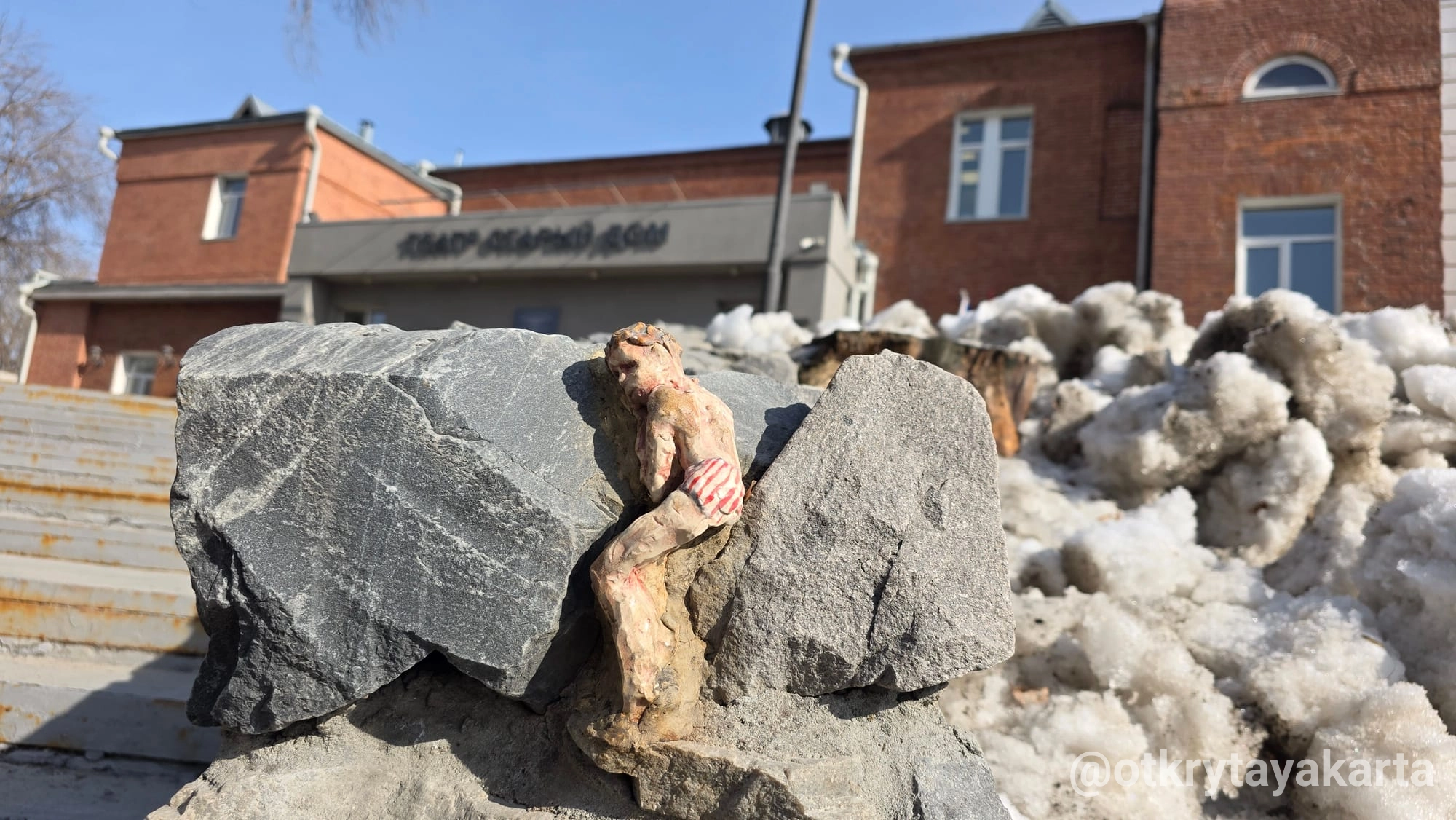 На следующий день они с подругой вернулись и установили двух глиняных мальчиков. Катя улетела на гастроли в Китай и ничего не ждала от этой интервенции — думала, скульптуру заберут сразу. Но друзья уговорили записать рилс. Видео разлетелось. Люди начали писать, приходить к музею, интересоваться.
