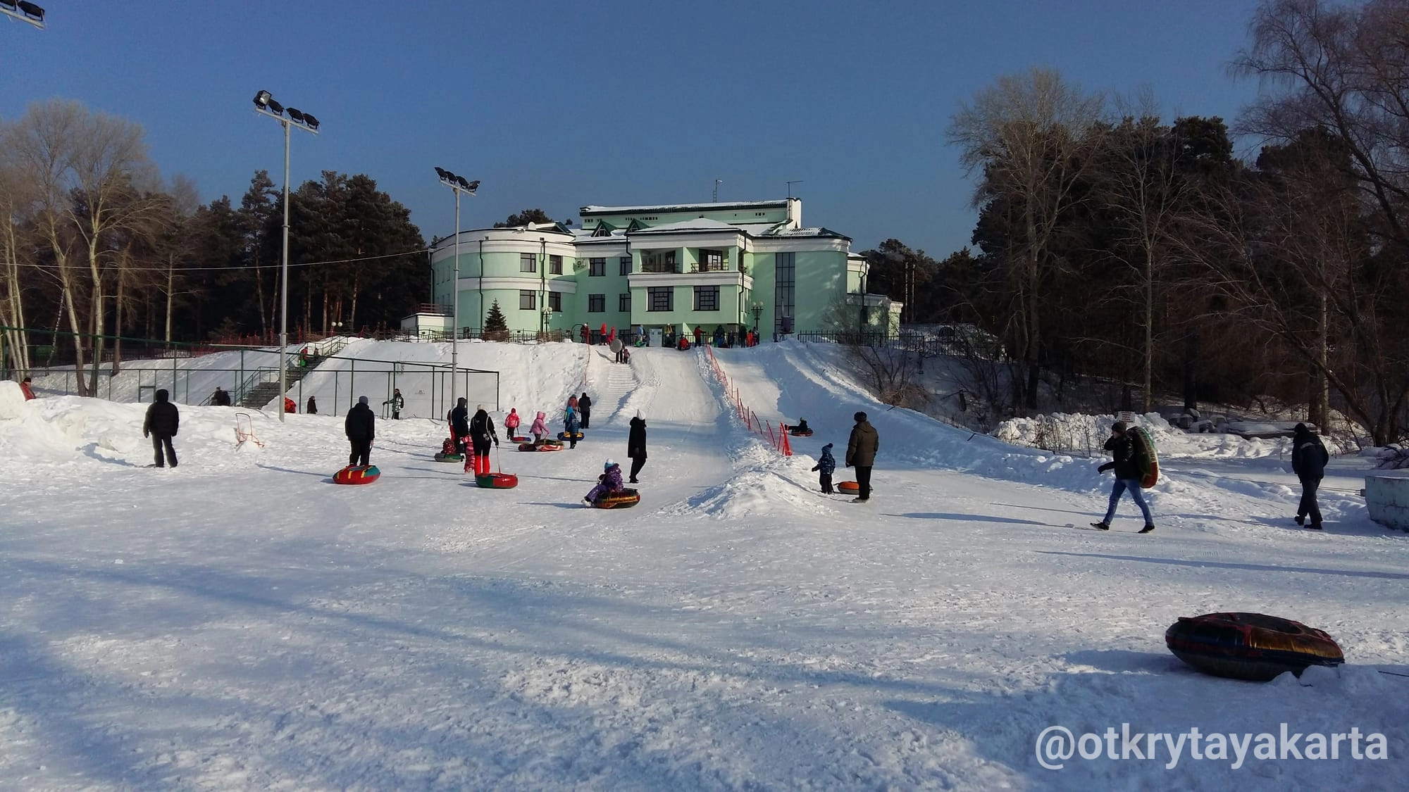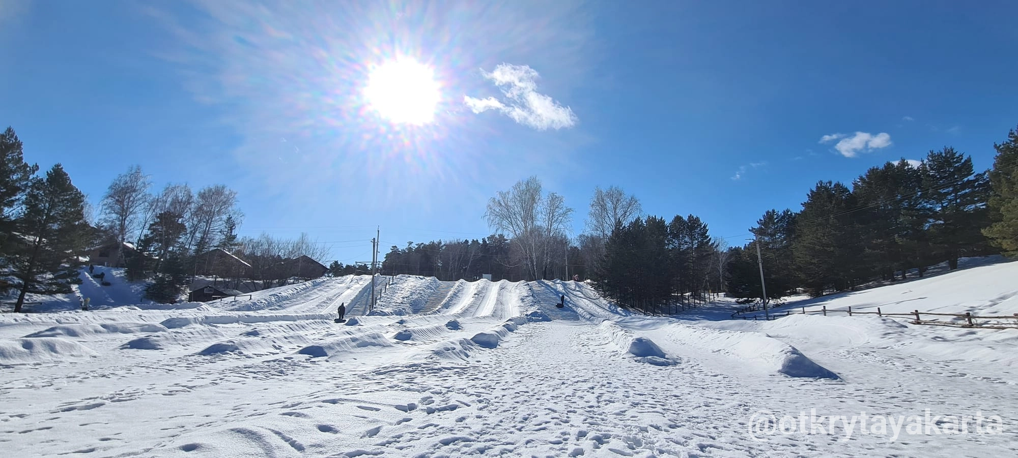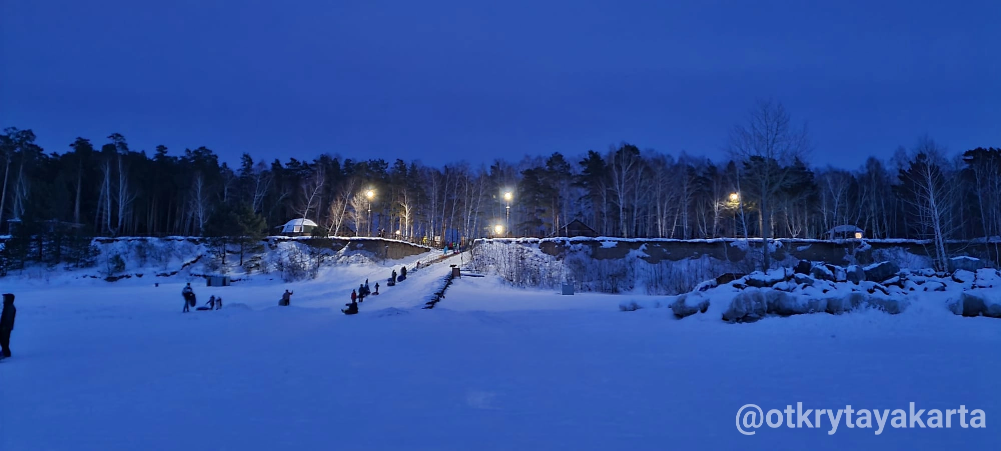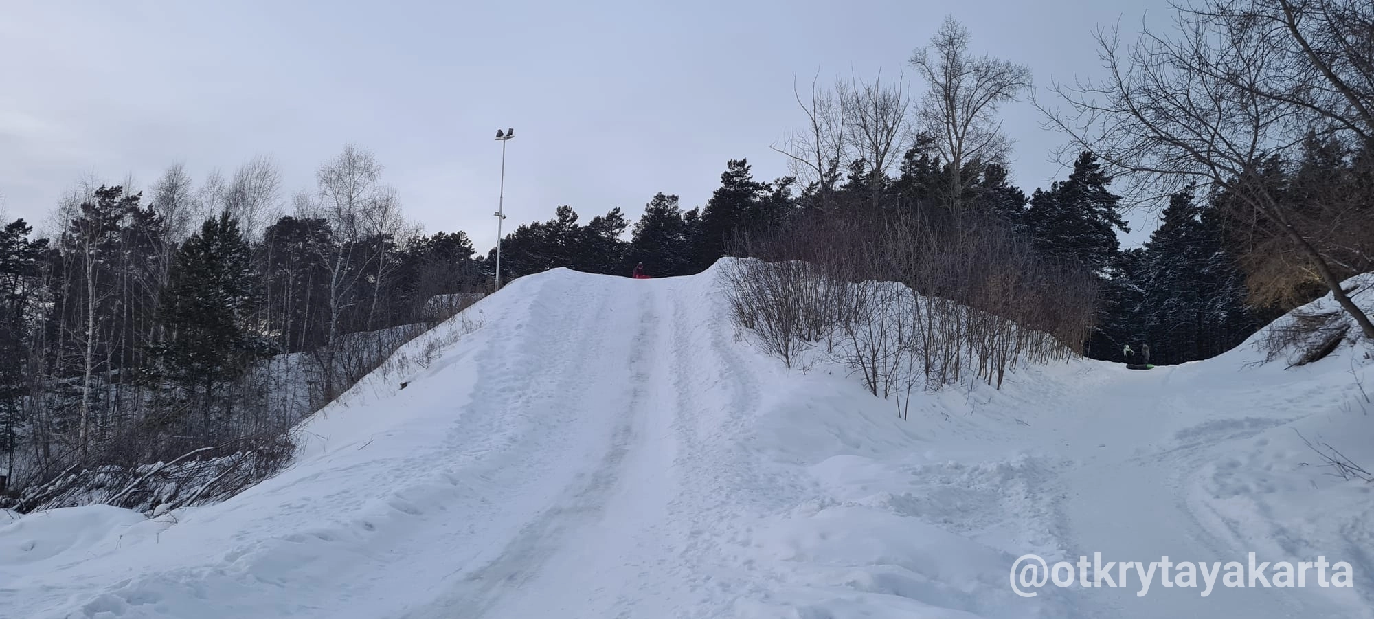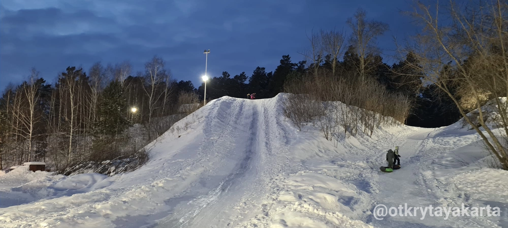 Горка здесь профессионально оборудована: три полосы, освещение для вечернего катания и музыкальное сопровождение. Протяженность спуска — 80 метров, перепад высоты — 10 метров. Это обеспечивает отличную скорость и порцию адреналина. Рядом работает каток, а после активного катания можно заглянуть в кафе, чтобы согреться горячим чаем.