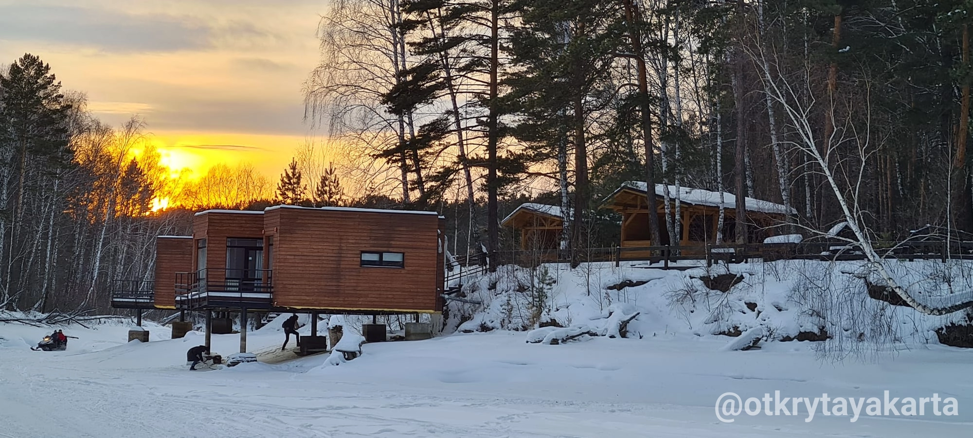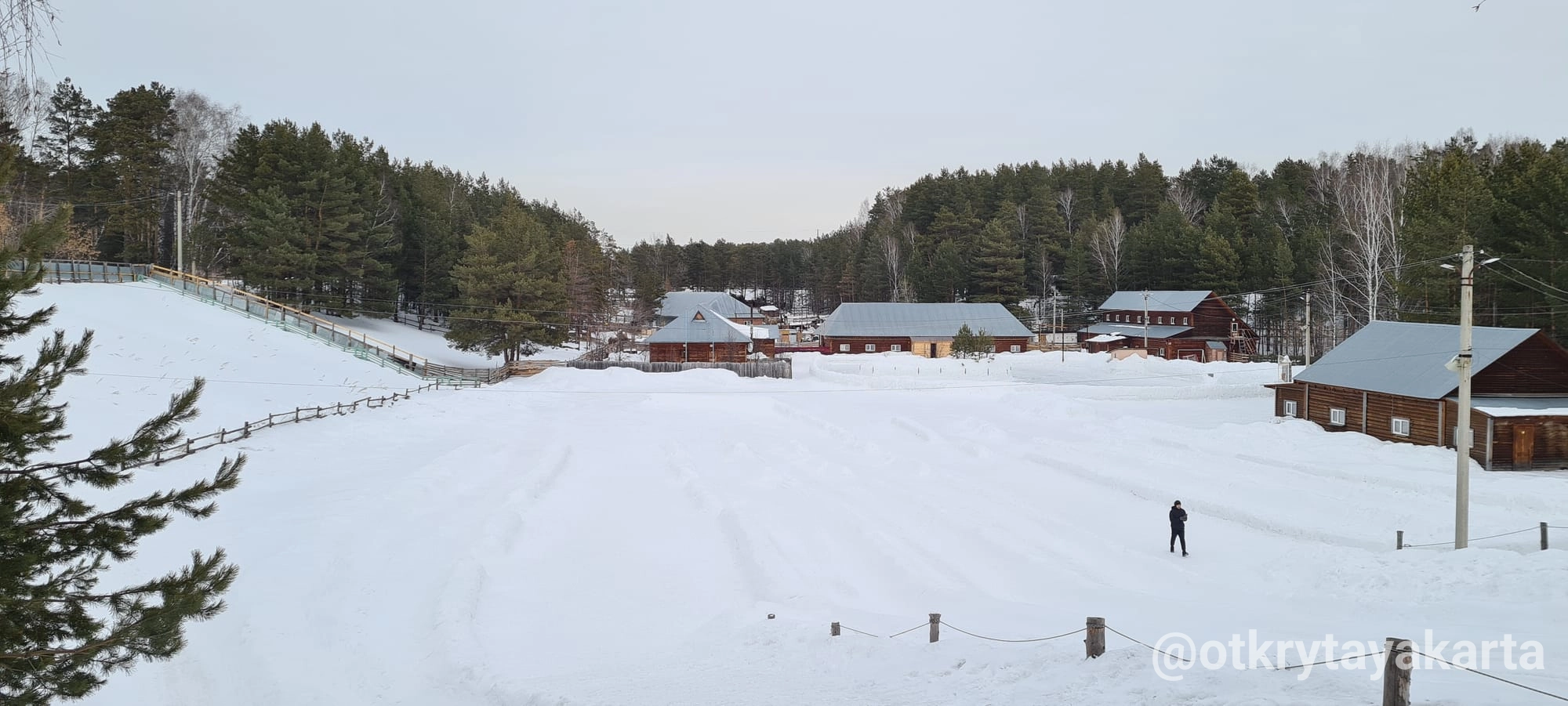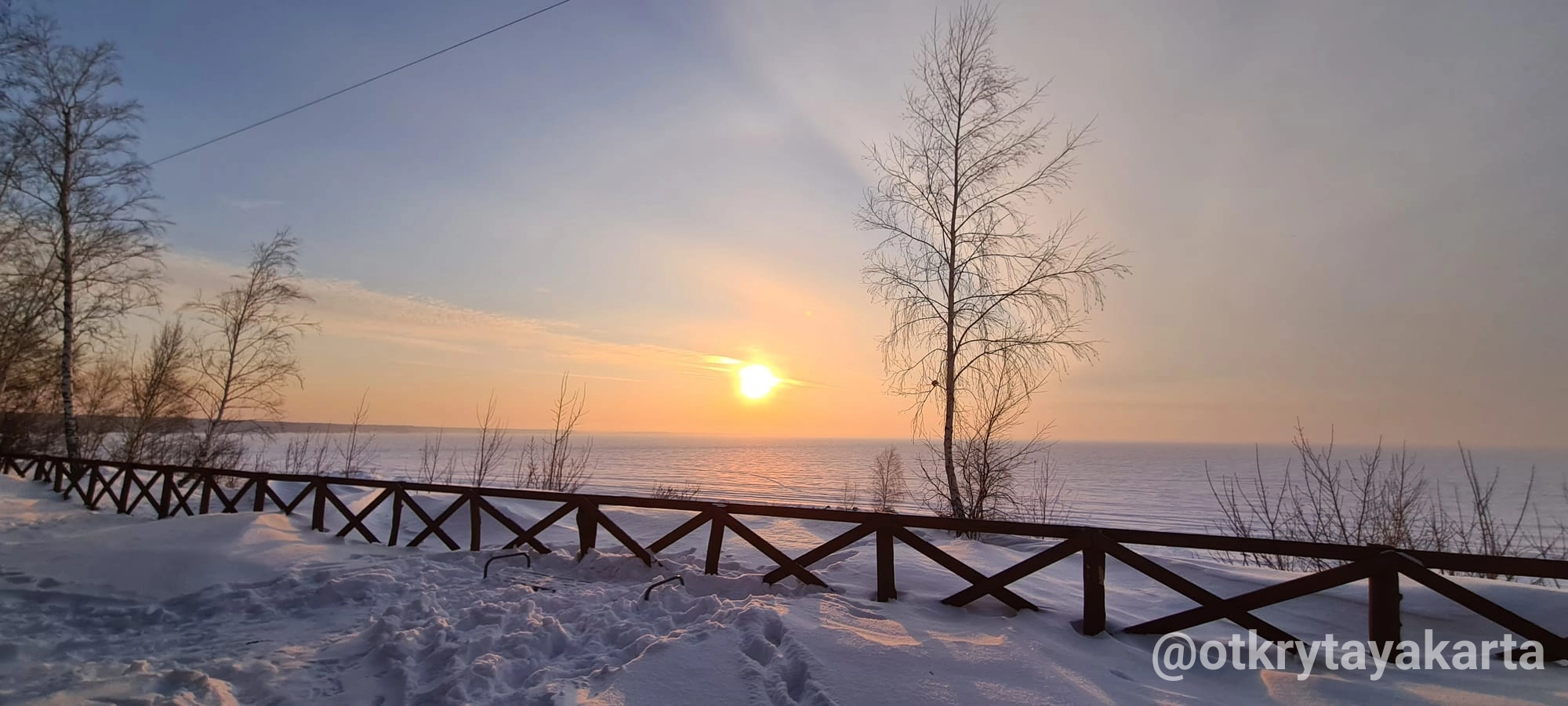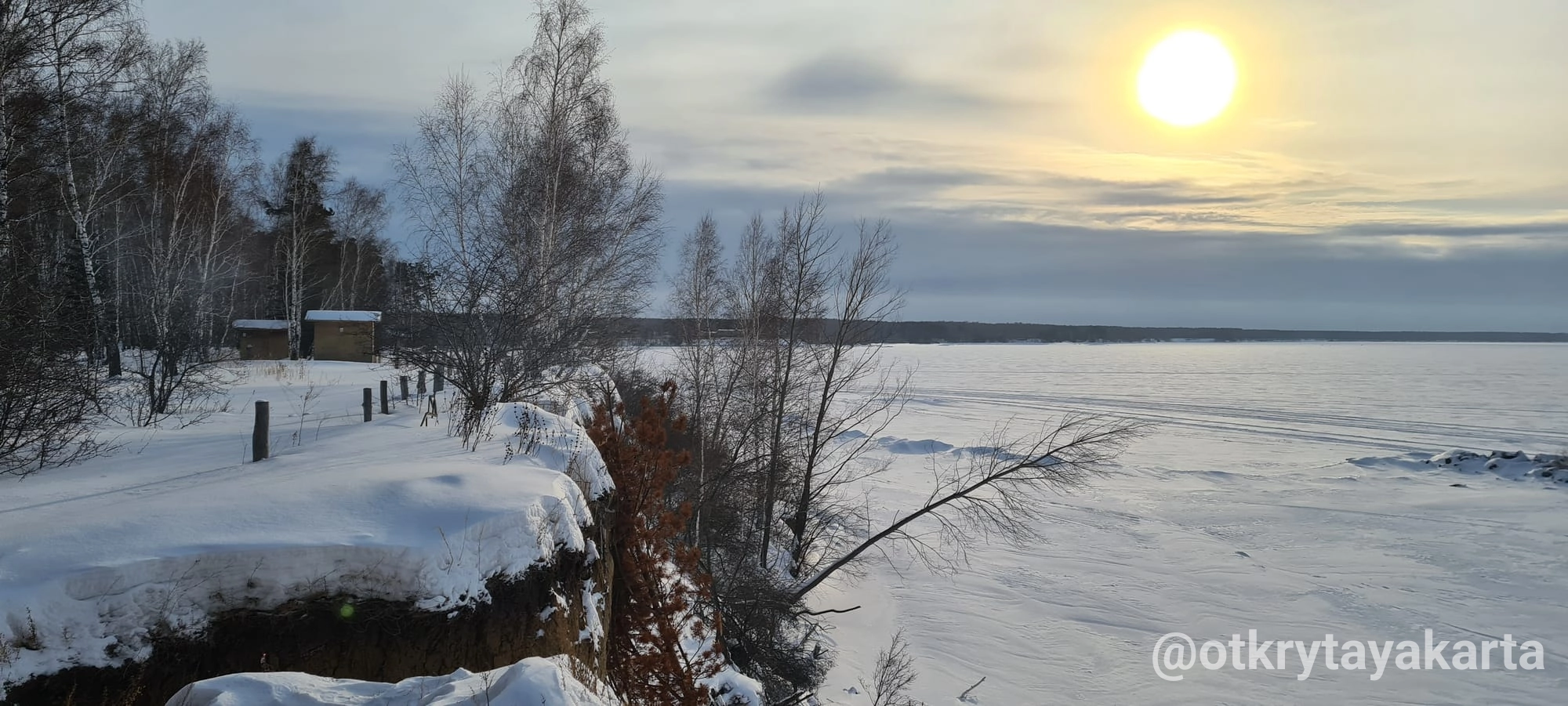 Деревянная горка на берегу — настоящий магнит для любителей ватрушек. Длина спуска здесь достигает 100 метров, и трасса ведет прямо на лед! Кататься можно как со своими ватрушками, так и воспользоваться услугами местного проката.