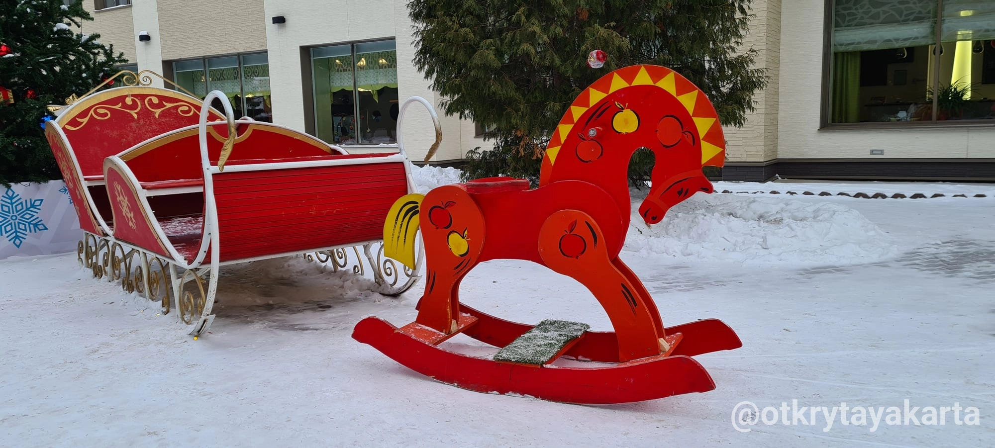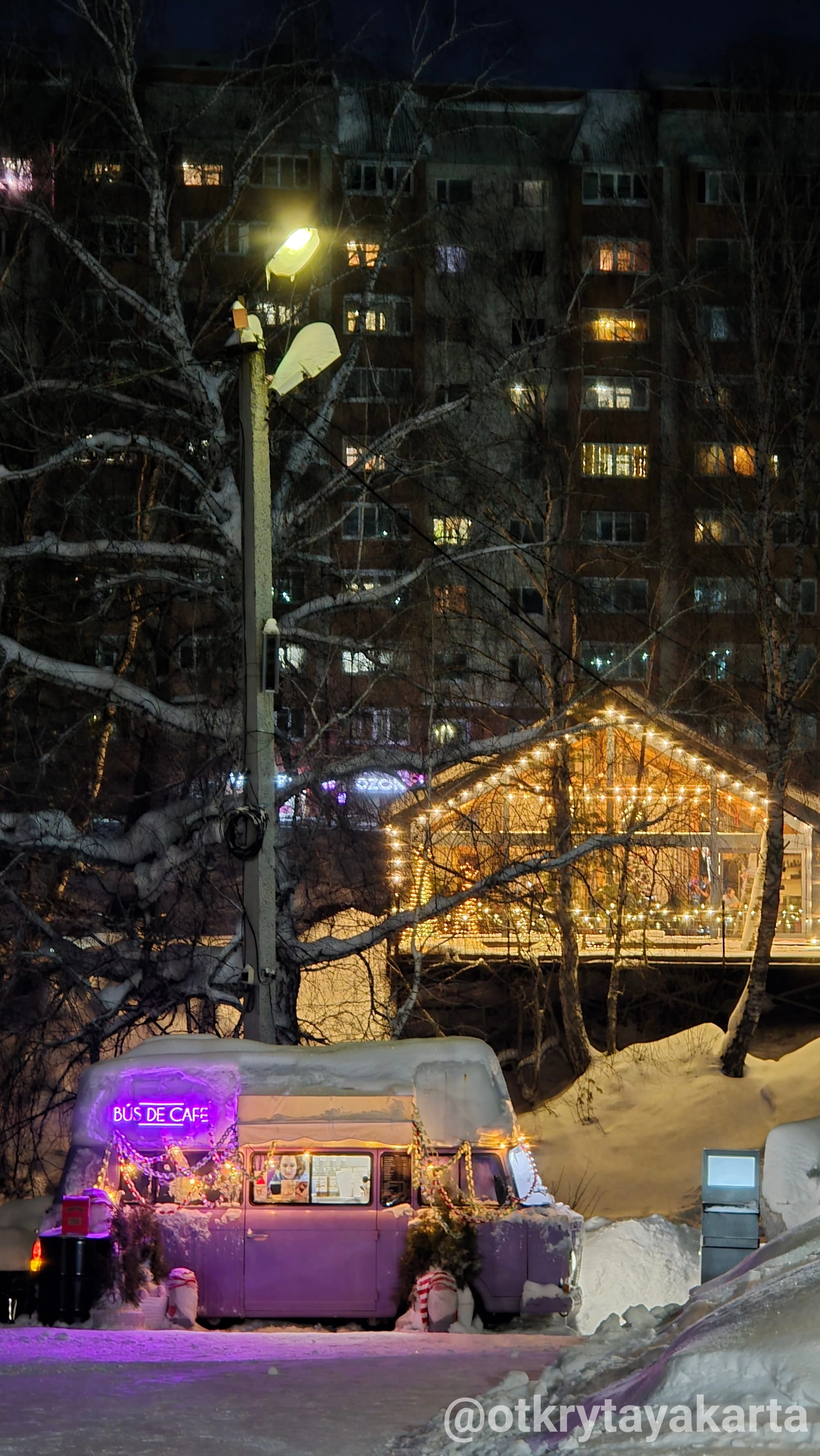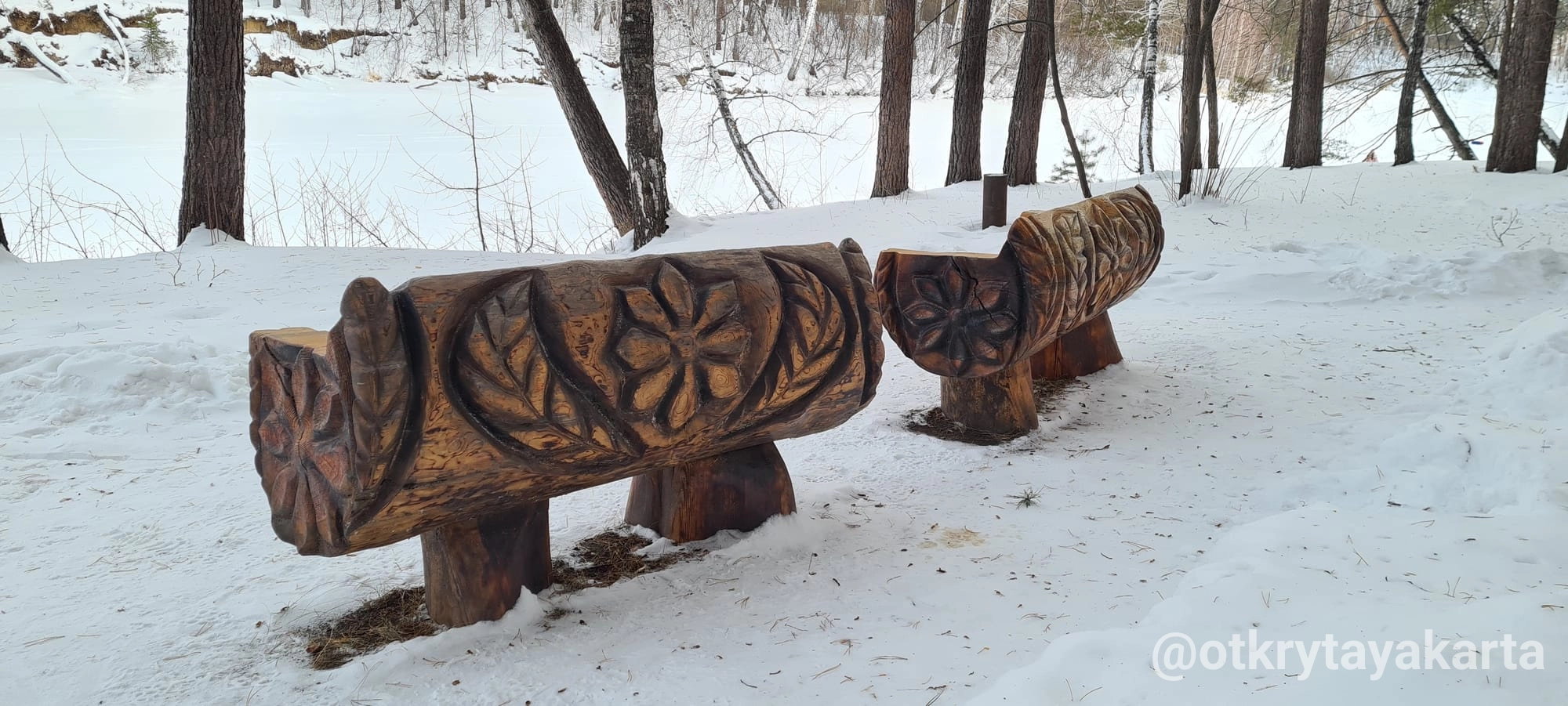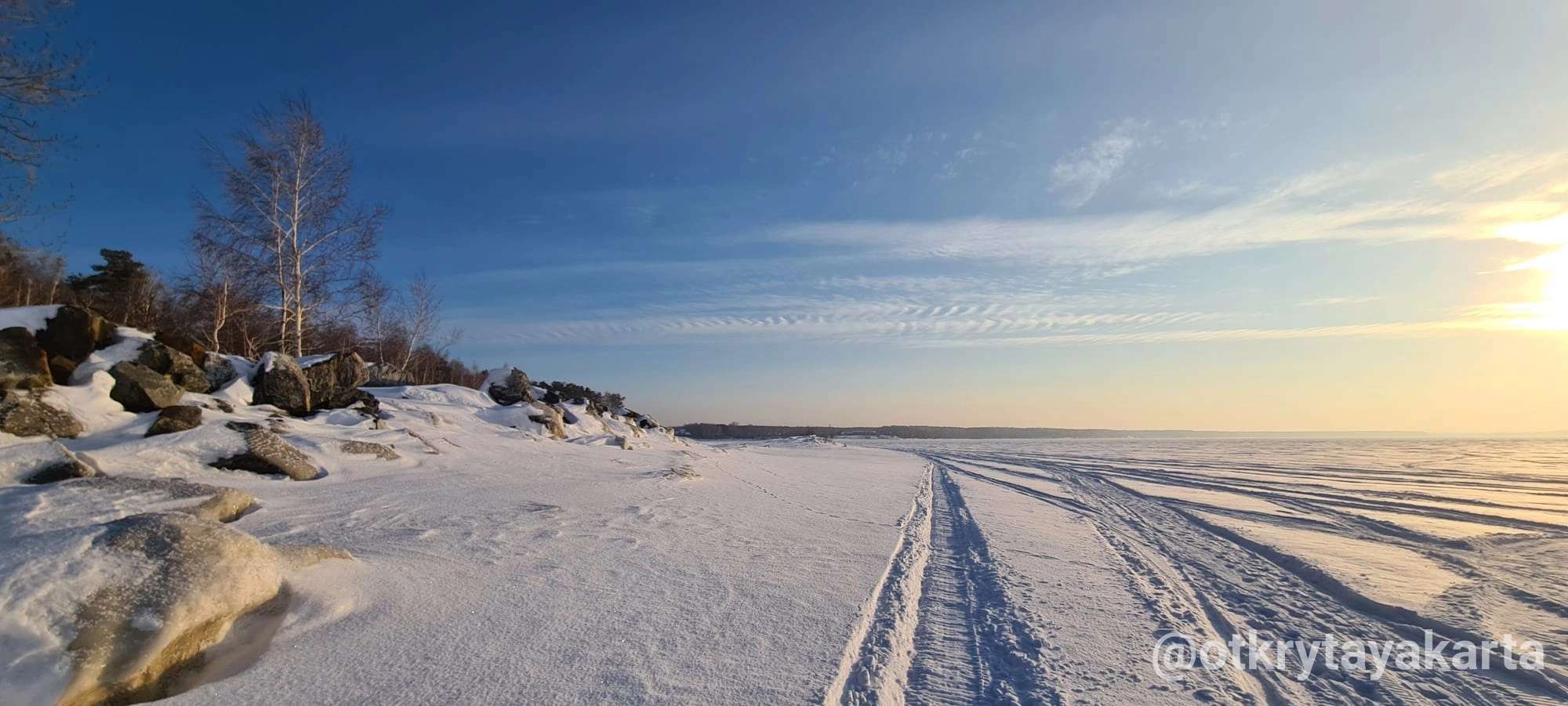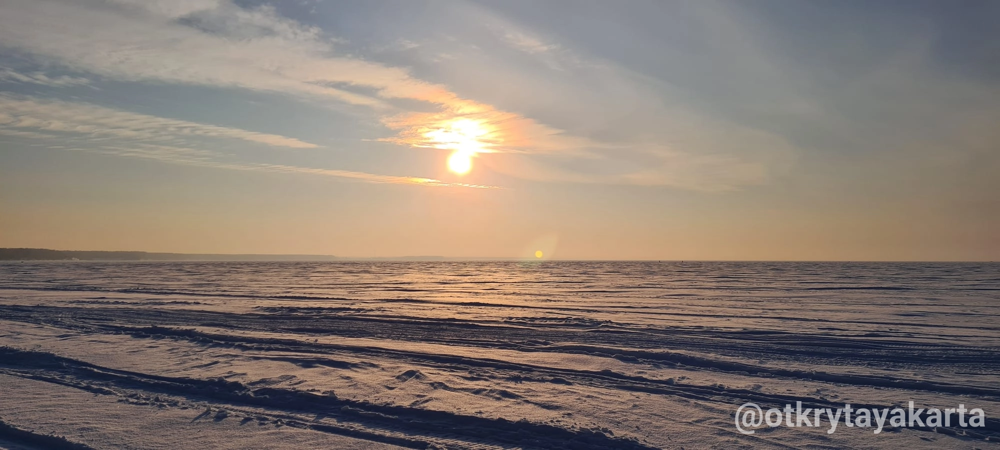 Деревянная горка на берегу — настоящий магнит для любителей ватрушек. Длина спуска здесь достигает 100 метров, и трасса ведет прямо на лед! Кататься можно как со своими ватрушками, так и воспользоваться услугами местного проката.