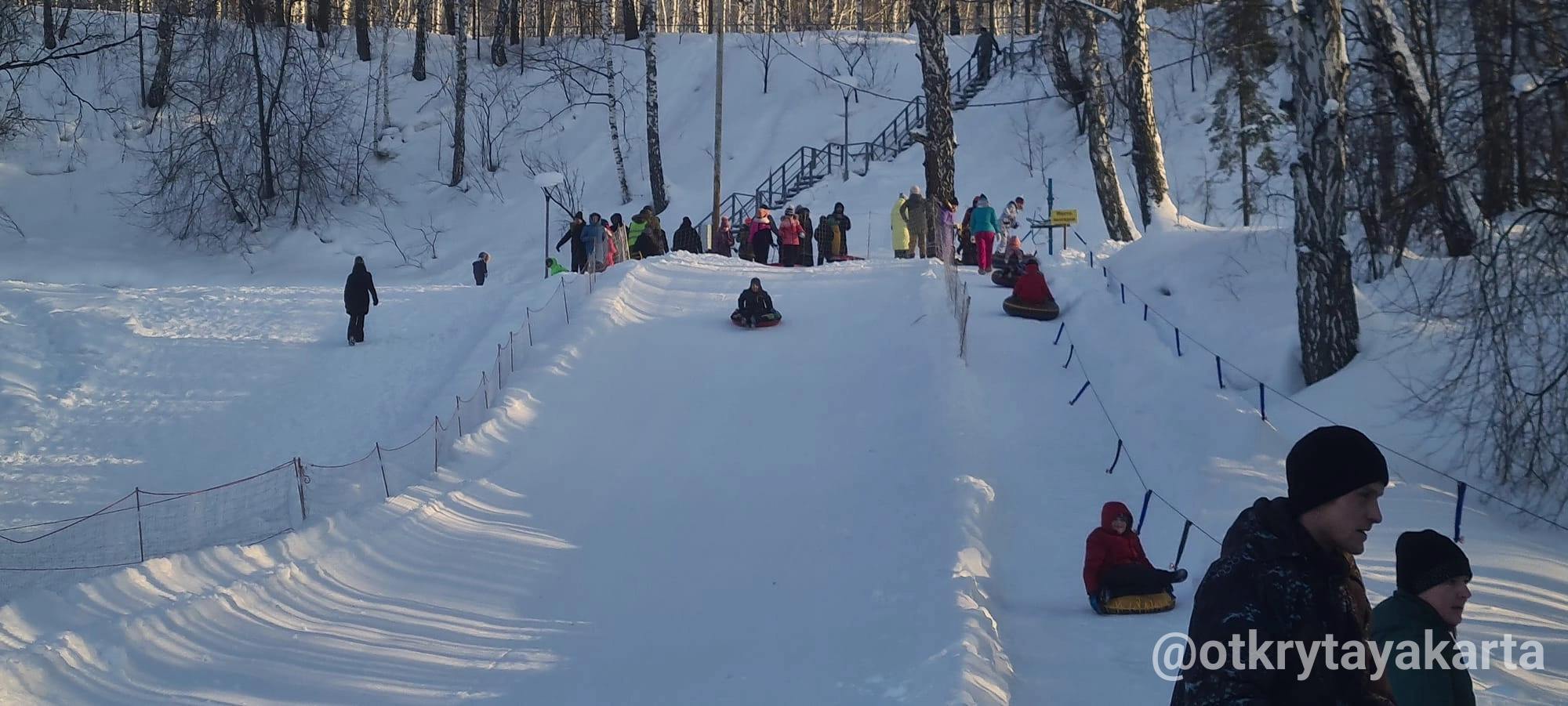 В Заельцовском районе есть место, которое полюбили и взрослые, и дети. «Горячий Лёд» — это прежде всего большой каток, но рядом с ним оборудована отличная тюбинговая трасса. Кататься здесь особенно приятно: играет музыка, работает кафе, а вокруг — сказочный зимний парк.