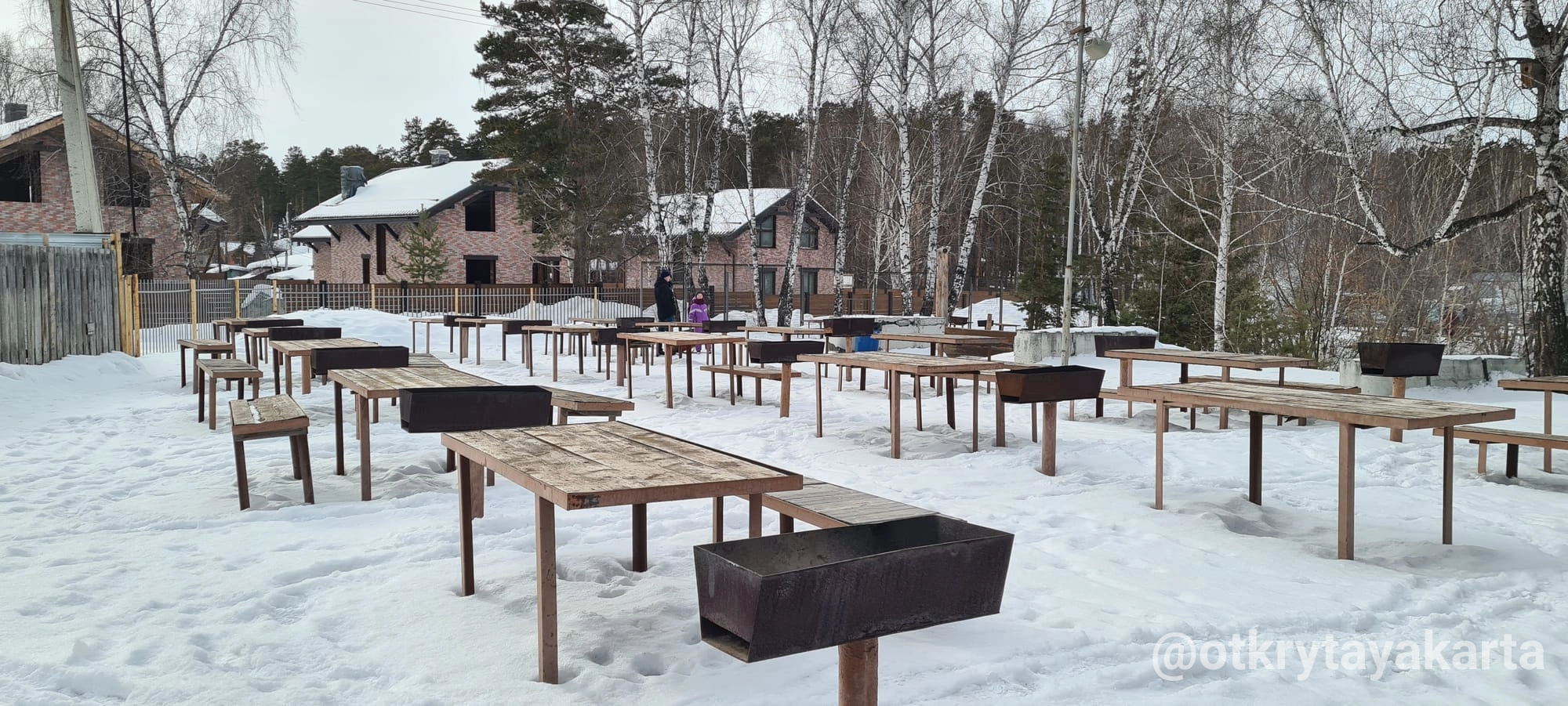 На территории оборудовано несколько горки на любой вкус. Все они протяженные, с хорошим накатом и огорожены высоким забором — безопасность здесь на первом месте. Длина самого популярного спуска достигает 100 метров. В оплату за вход включена аренда любого мангального места.